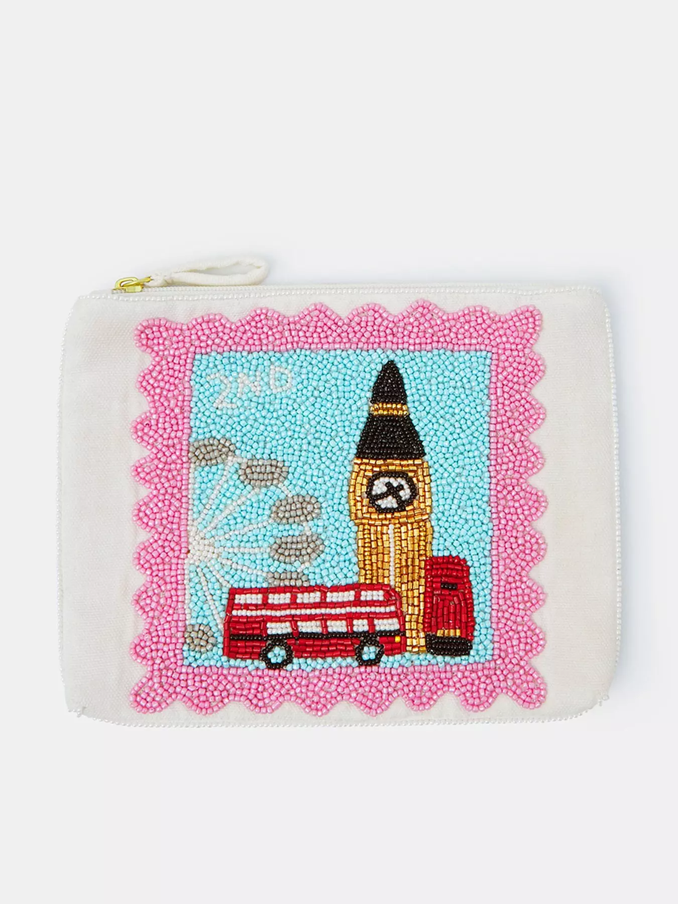 London, baby! Designed with a beaded stamp that features all the city's faves, this pouch is a cool addition to your daily tote. Why not?- Material Content: Outer: Cotton 100% Lining: Polyester 100%