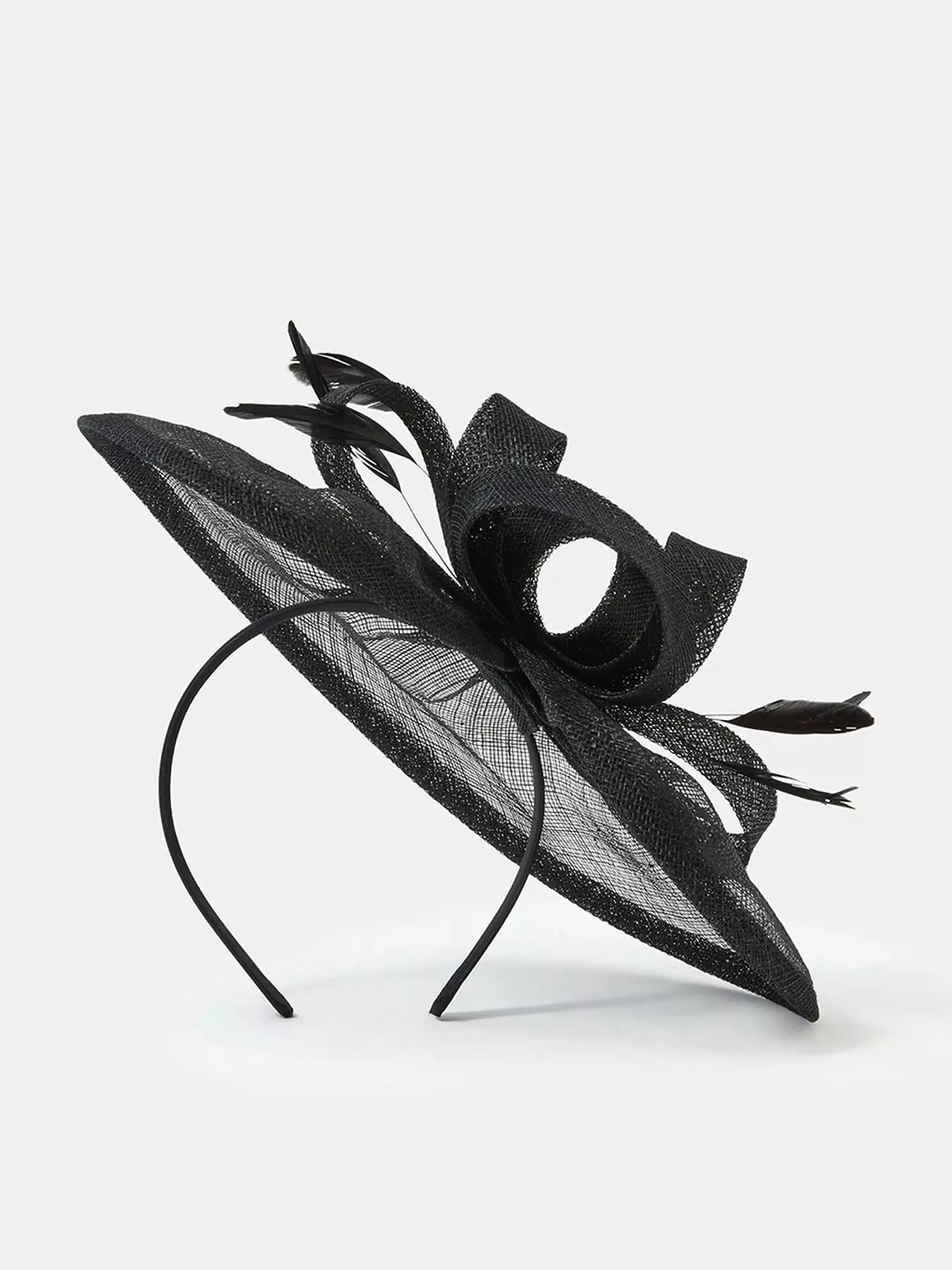Ooh, fancy! Whether you're attending a summer wedding or treating yourself to a day at the races, you'll need this. Designed with a structured disc in a shape reminiscent of a lily pad, this fascinator is finished with a wrap bow and delicate feathers.- Material Content: Composite: Abaca 95% , Feather (Turkey) 5%