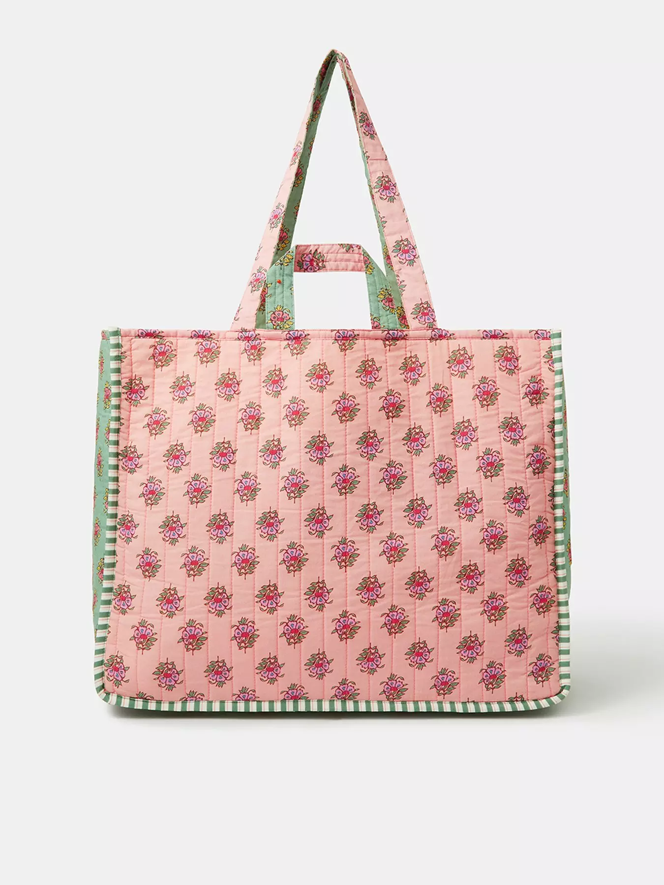 Who says running errands can't be cute? Boasting a quilted feel, this generously-sized shopper features a floral block print all over. Complete with striped piping and two sets of handles, it's an weekend essential.- Material Content: Outer: Cotton 100% Lining: Polyester 100%