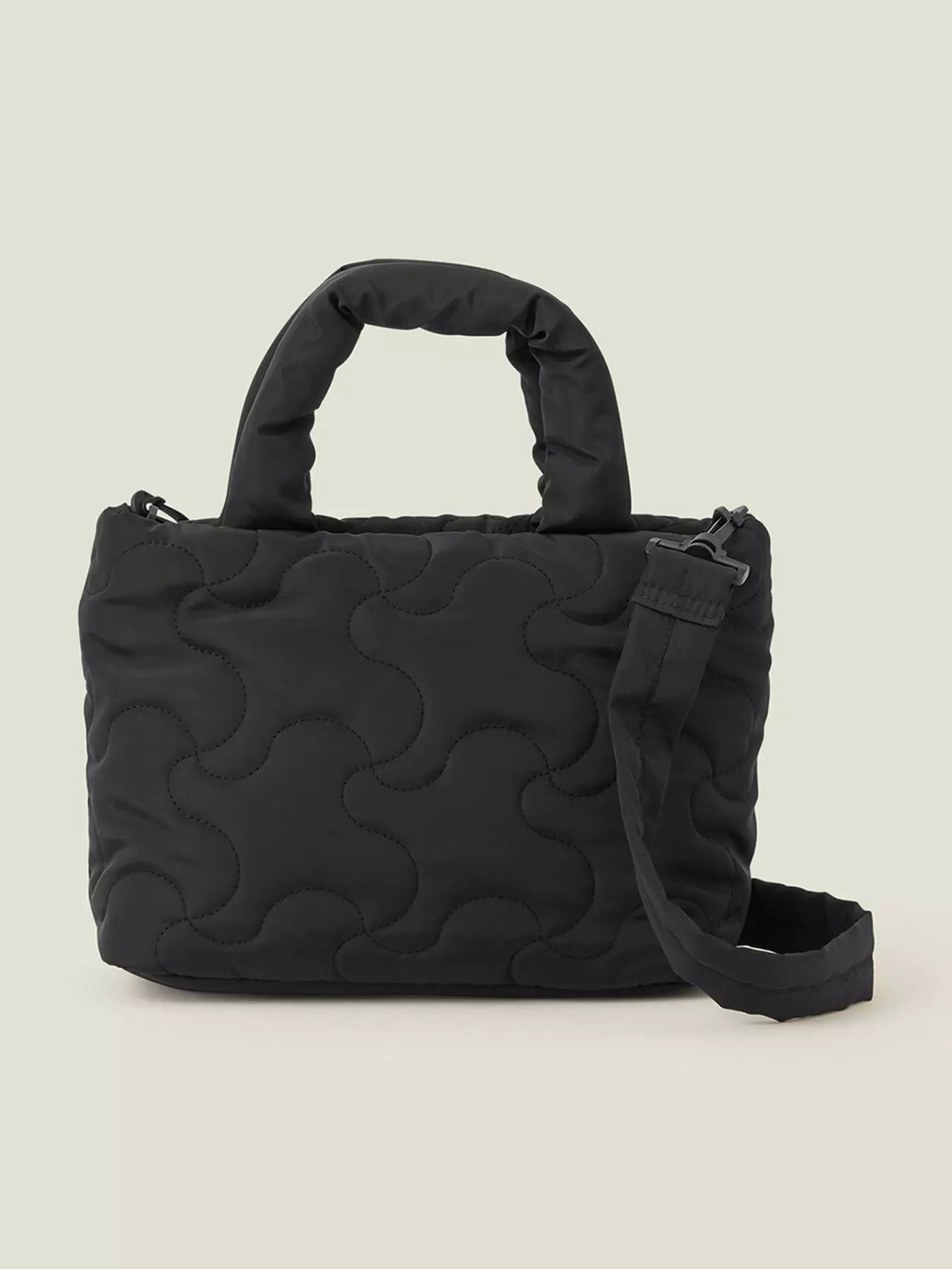 No effort required. A bag for every day of the week, this handheld piece features a wiggly quilted design and zip fastening with an extra pocket inside, too. Finished with an optional long strap. Made using recycled nylon.About the brand: