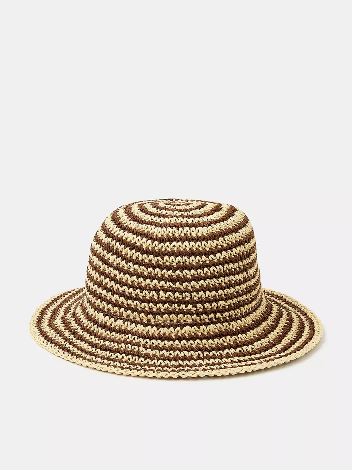 Swirled like your fave ice cream, this raffia bucket hat features chocolate-coloured stripes. Whether you're exploring old town or soaking in all the rays by the pool, make sure it's strapped onto your tote for any summer adventures.- Material Content: Outer: Paper 100%