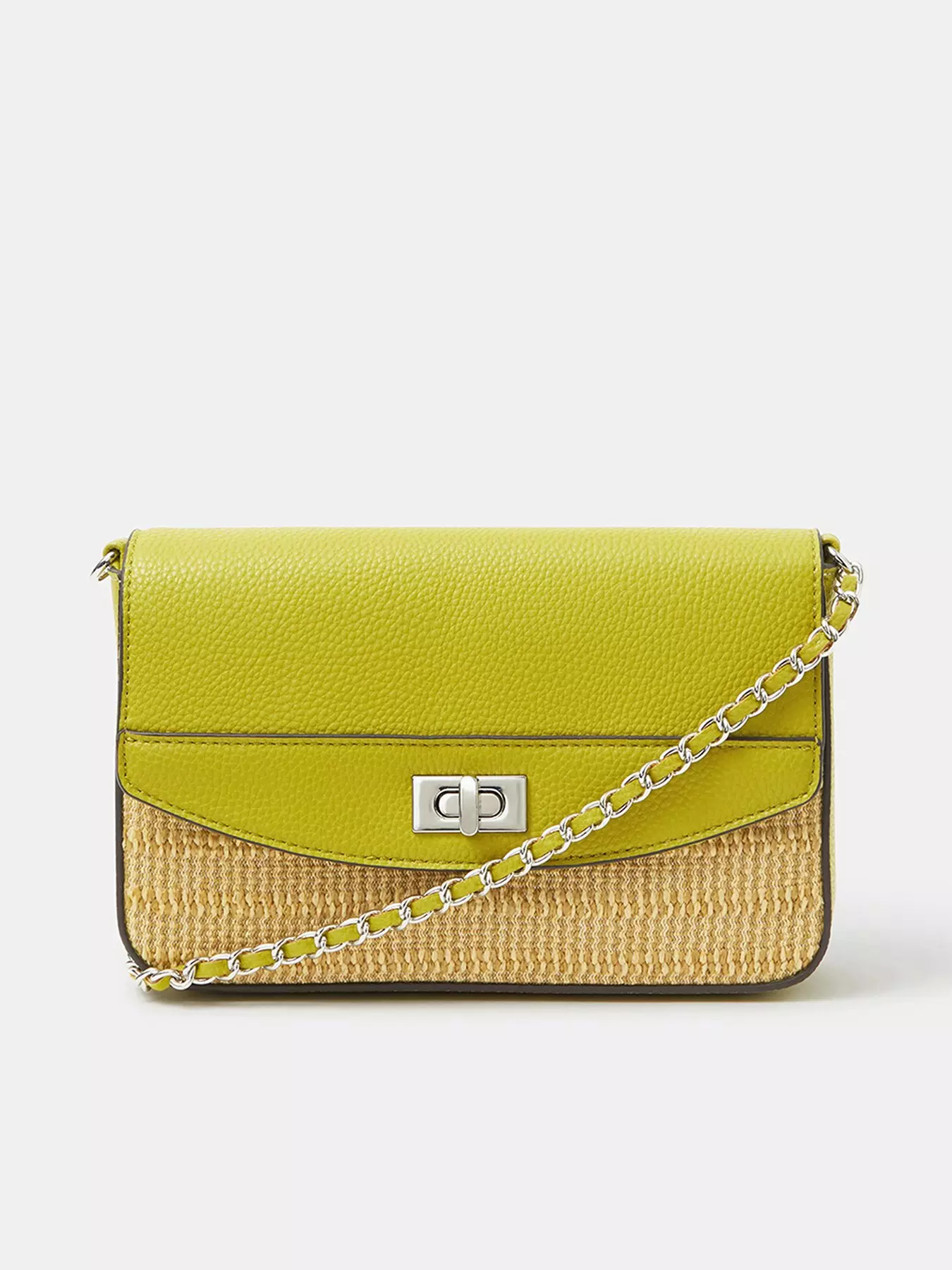 A summertime essential. Whether you're enjoying picky bits in the park with friends or walking along the beach, this is the bag to have. Featuring a faux leather flap and twistlock fastening, it's designed with neutral raffia and a braided crossbody strap to match. Complete with a zipped inner pocket for all your small bits!- Material Content: Outer: Polypropylene (PP) 60% , Polyurethane (PU) 40% Lining: Polyester (Recycled) 100%