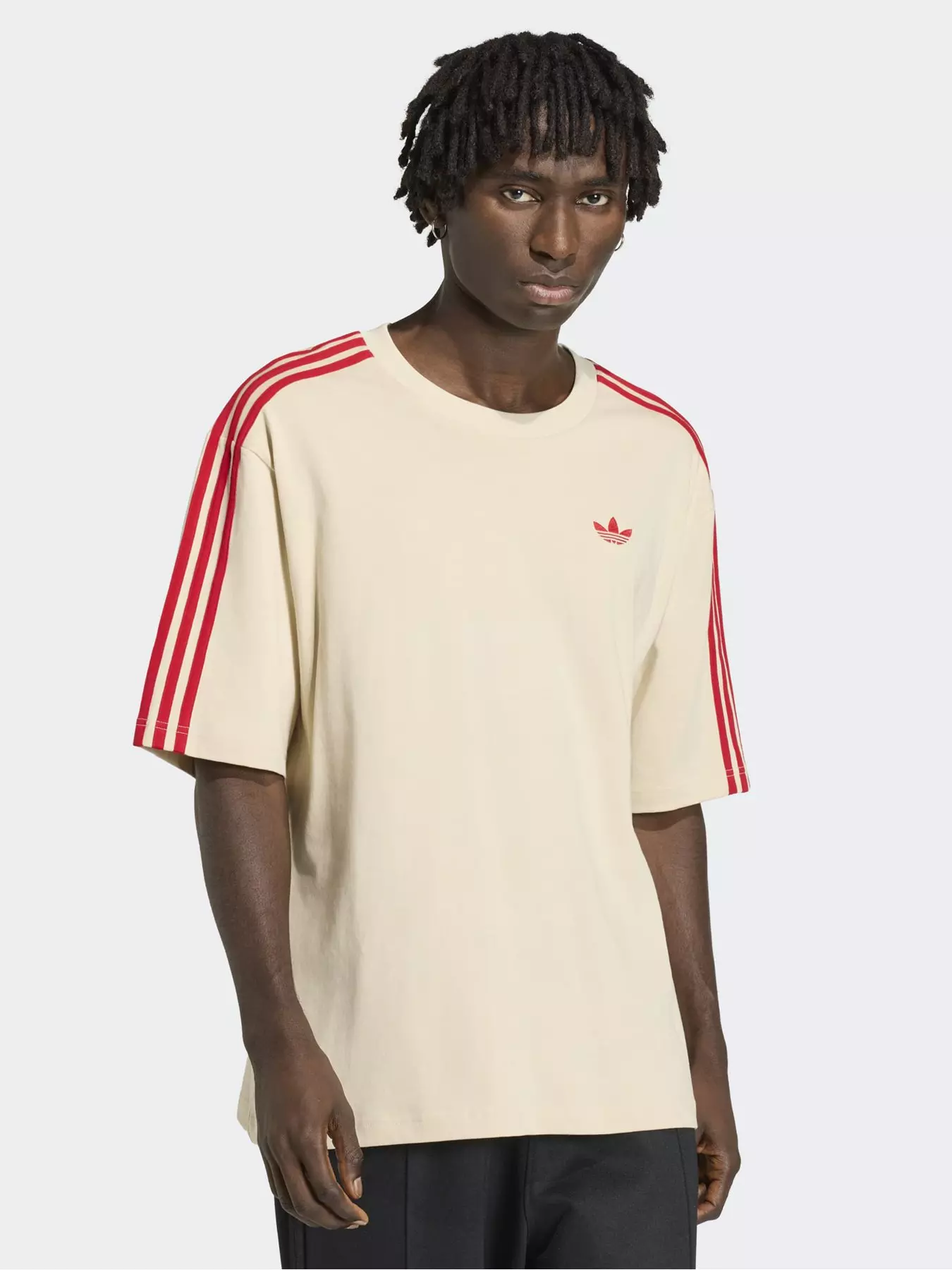 adidas OriginalsMens 3 Stripe Tee - Beige