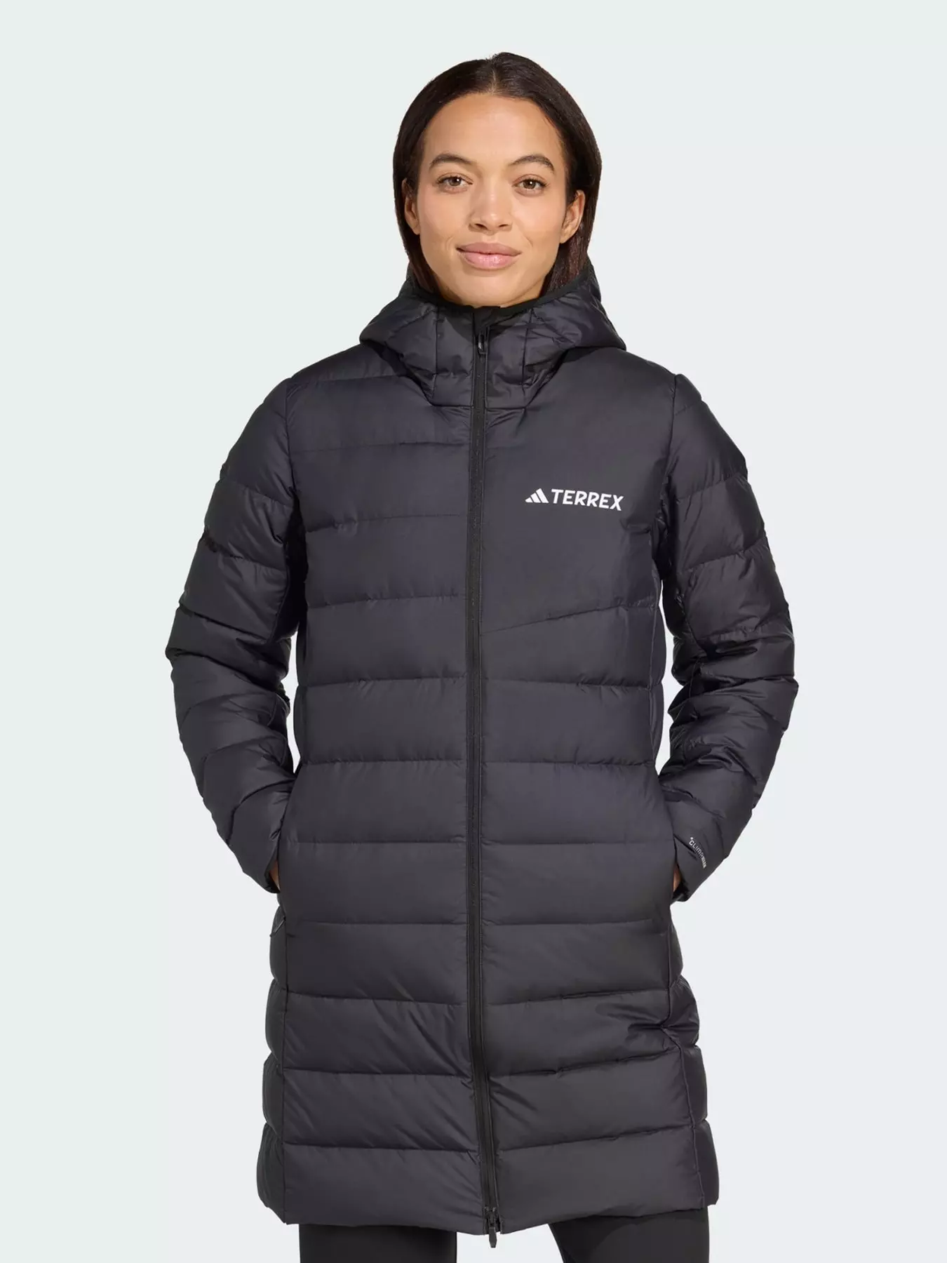 When the weather turns cold, this adidas Terrex parka turns up the heat with down insulation. CLIMAWARM traps heat and releases sweat for a warm, dry and focused performance. The long cut covers the waist and thighs for extra warmth. Backpack-friendly shoulder seams let you comfortably carry a pack, while side pockets keep the small stuff for easy access. A hood and a water-repellent finish mean you can stay out longer in cool, damp conditions.Insulating materials trap warmth for optimal body temperature. Beat the elements with thermal insulation and water-repellency for optimal shell-layer protection.- Regular fit