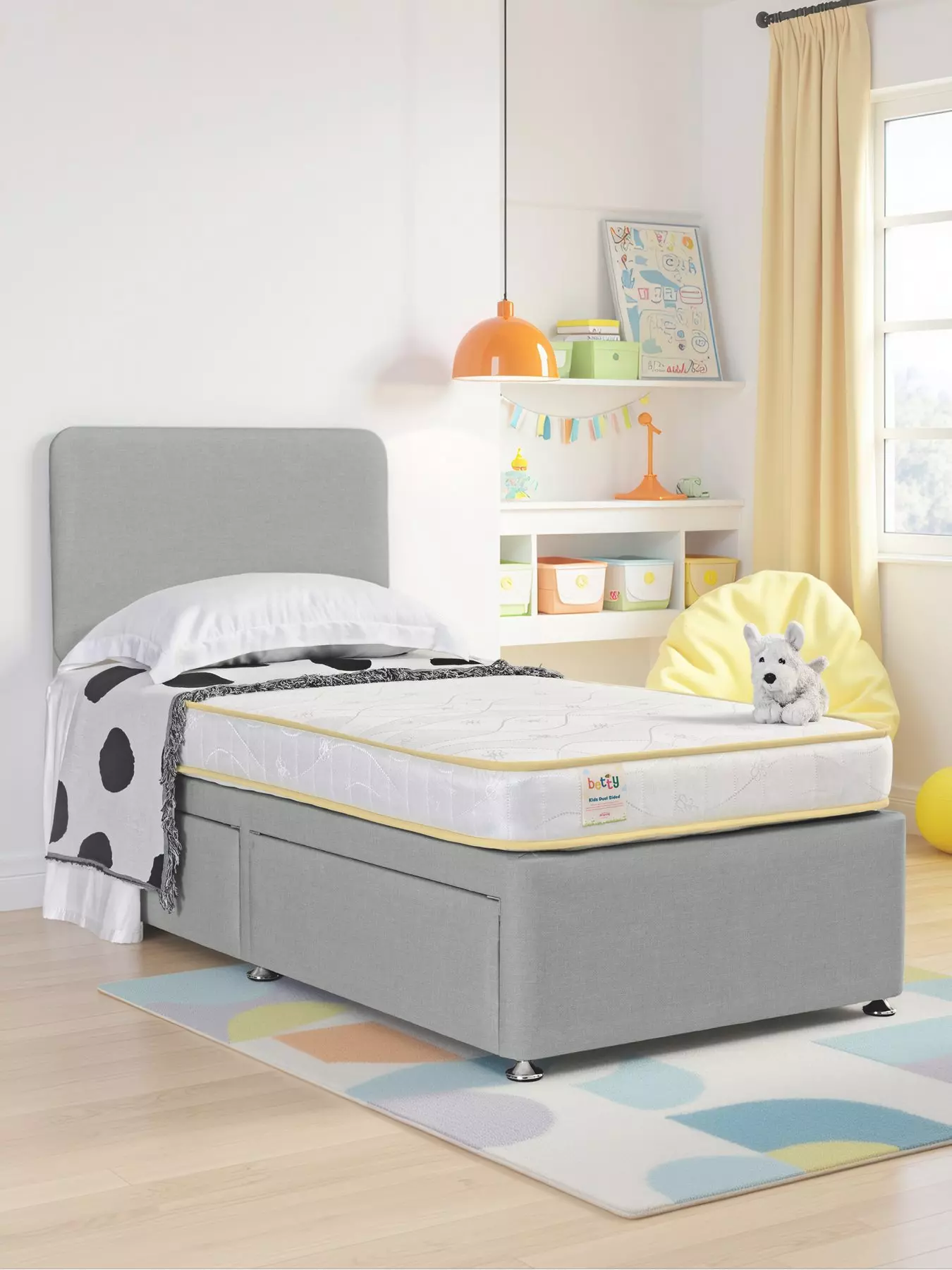 The Ultimate Kid-Friendly SolutionMake bedtime fun and stress-free with the Airsprung Betty Bed Set. This clever design features our unique dual-sided mattress: a Big Kid side with a soft-touch bee design for regular nights, and a Safety side with a waterproof finish for those inevitable little accidents. Complete with a matching headboard and integrated storage, it is the all-in-one bedroom upgrade that parents love and kids adore.