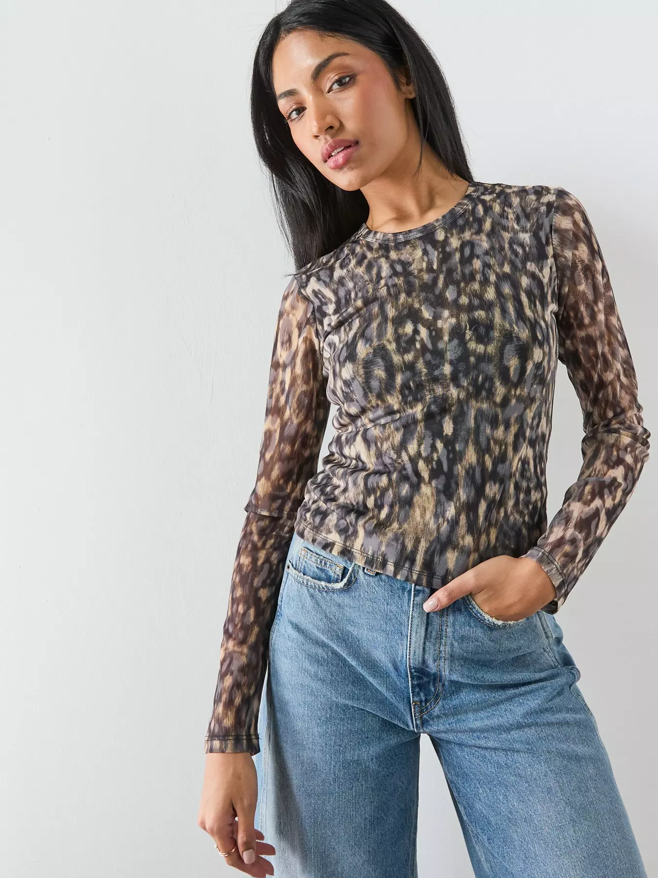 AllSaints Ellie Mesh Ls Tee - Leppo Brown