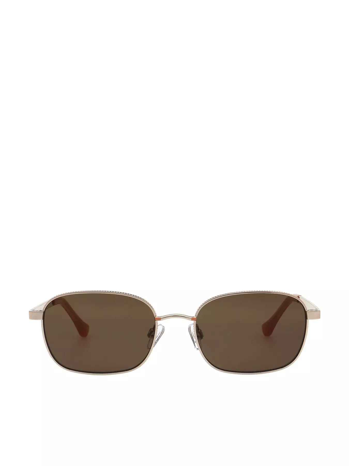 This shallow square metal is brought to you by Florence by Mills. Shown here in a matt gold finish with peach temple tips, it's complemented by tiny soft peach details on the temples that are echoed on the bridge. Features adjustable nose pads- Washing Instructions: Wipe Clean