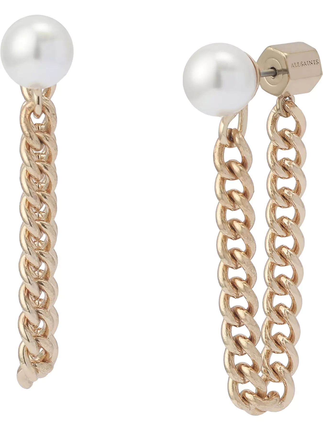 AllSaintsPearl Chain Front Back Earrings - Gold