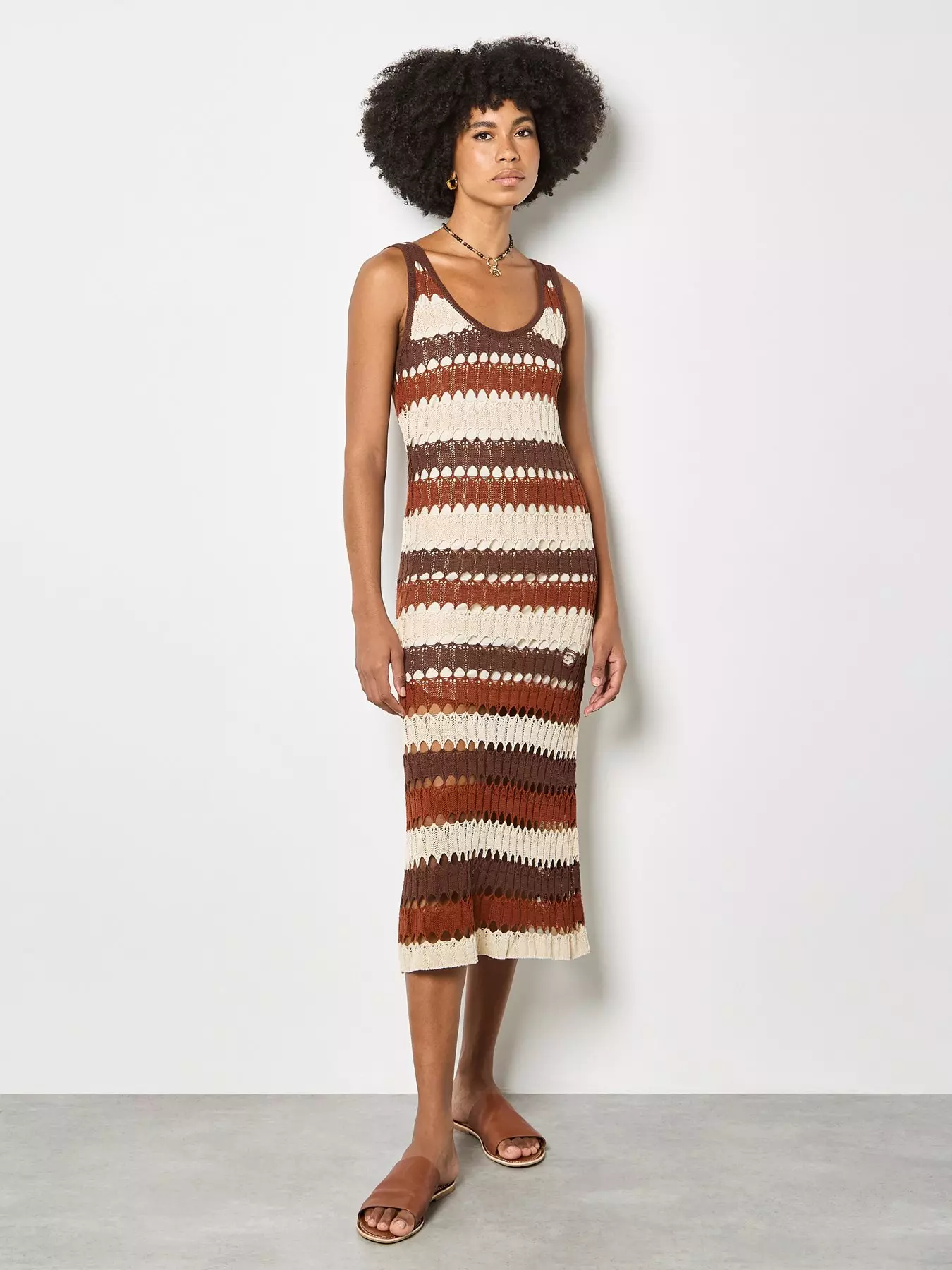 E.A.N: 5 0 5 2 6 0 3 1 9 2 8 4 7Apricot Crochet Stripe Midaxi Dress