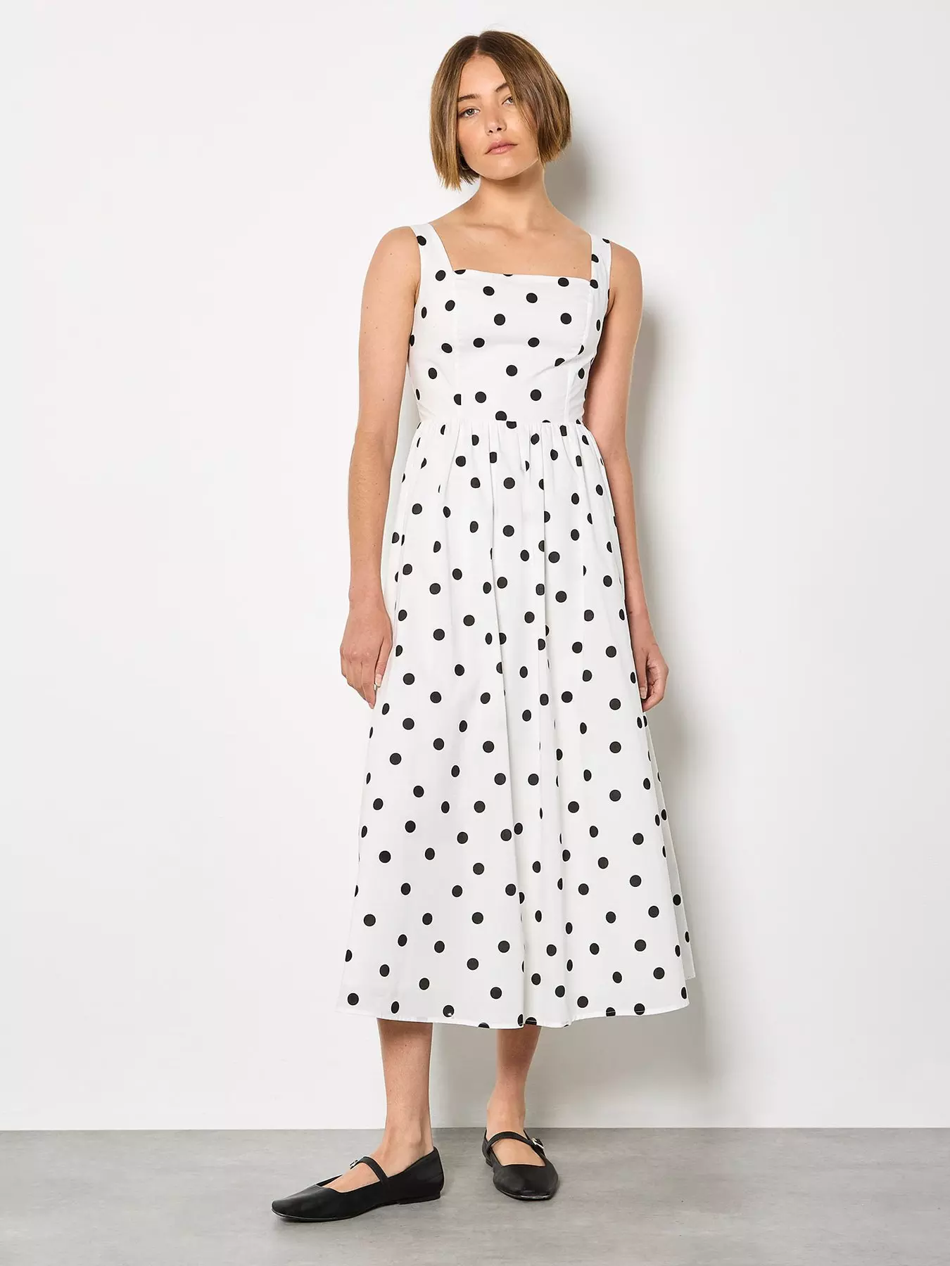 Apricot Apricot Polka Dot A-Line Midi Dress
