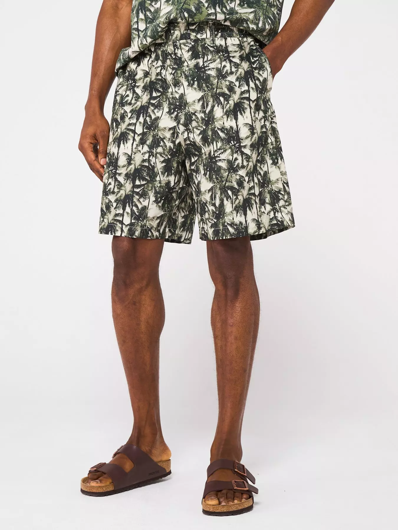 - Breathable cotton fabric with an all-over palm print