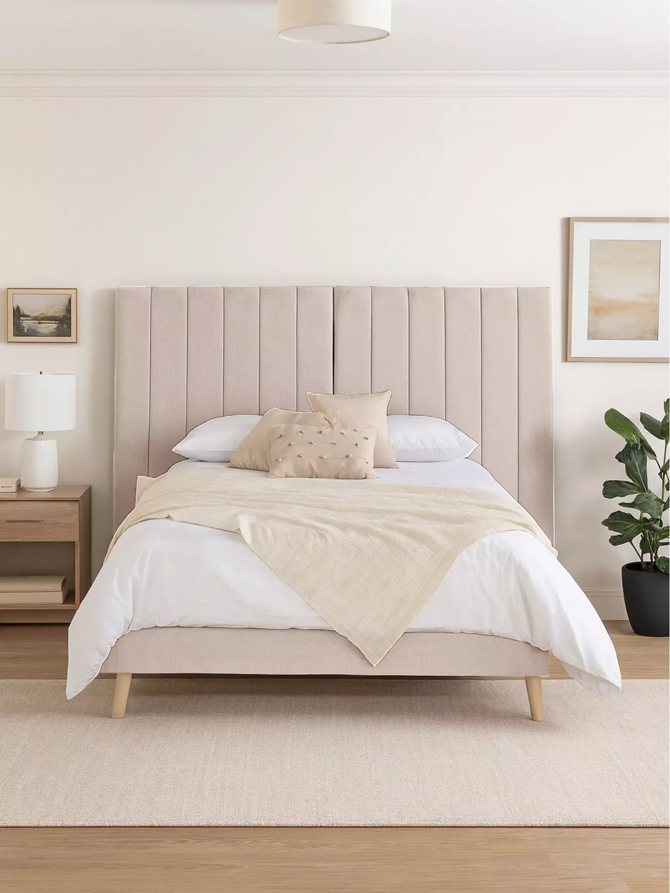 The Solara Bed brings a quietly confident presence to any bedroom with its tall, oversized headboard that features elegant vertical panel detailing. Its clean structure and refined upholstery create a bold focal point without overwhelming the space. This thoughtful balance of form and simplicity allows the Solara to sit comfortably within both contemporary and classic interiors.A key feature of the design is the wall mounted headboard. This secure fixing method creates a beautifully stable backdrop that remains perfectly aligned, giving the Solara its signature tailored look. It also allows the frame to sit neatly beneath the headboard which helps maintain crisp lines and a polished finish within the room. The result is a bed that feels considered and built with long term comfort in mind.