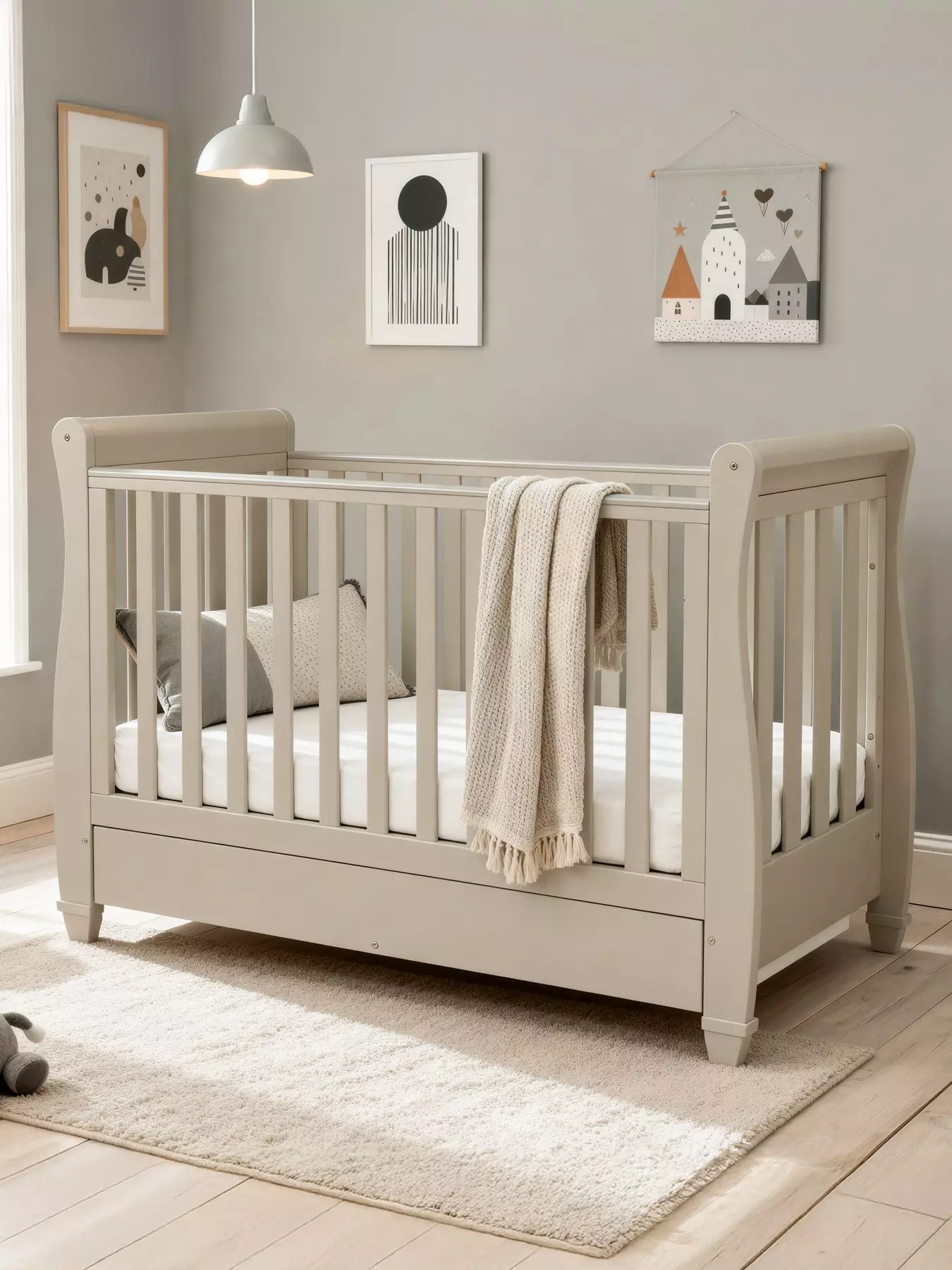 BabymoreEva Sleigh Cot Bed with Drawer - Cashmere