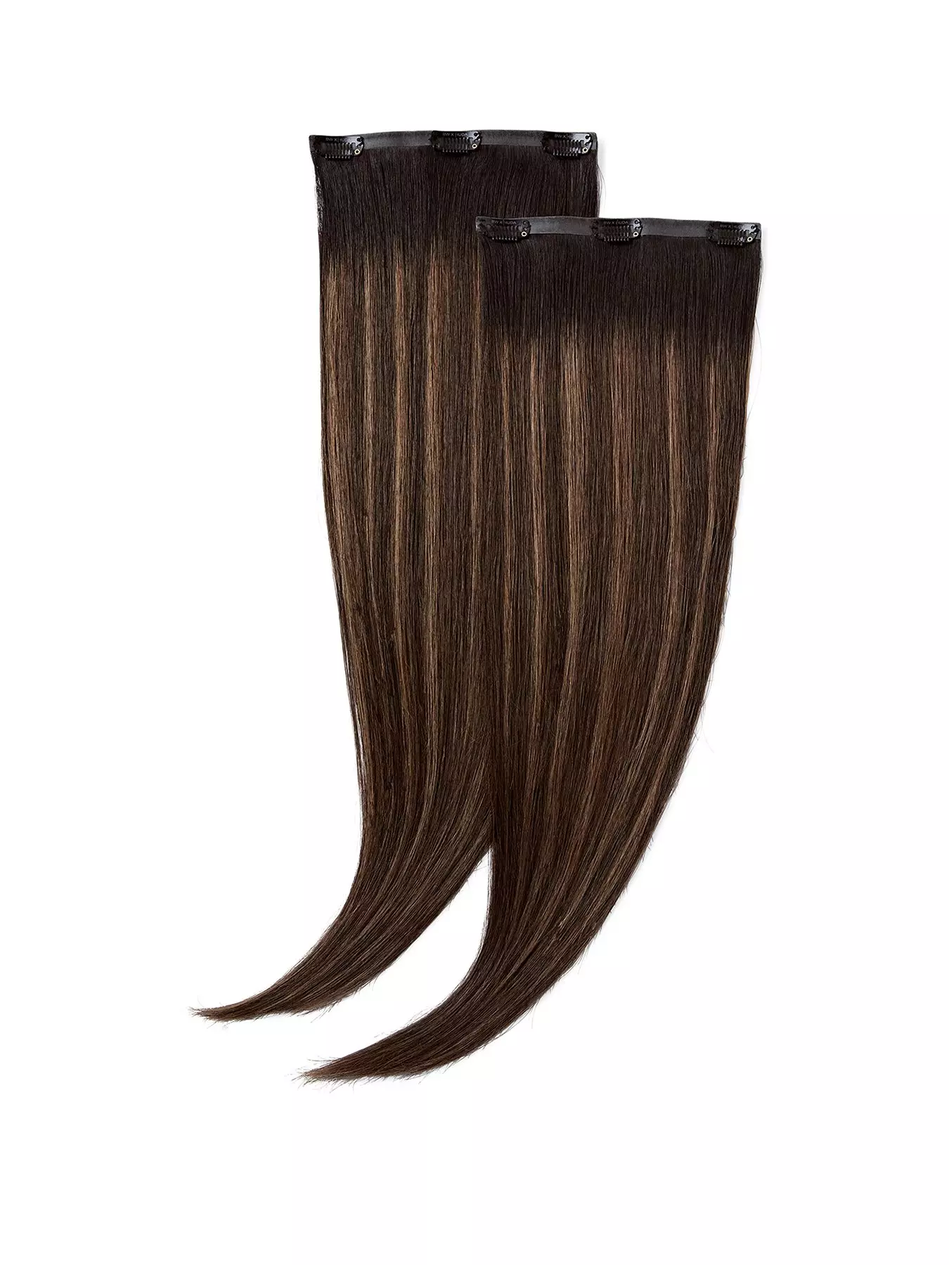 Place each 3-clip weft just above the ear line on each side of the head, clipping from the centre outward for a secure fit.