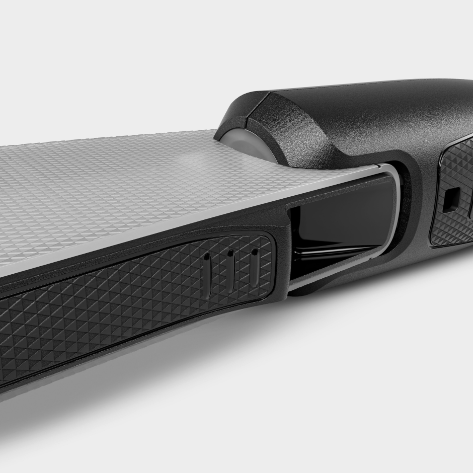The attachment can be easily removed with just one hand thanks to the buttons on the side.