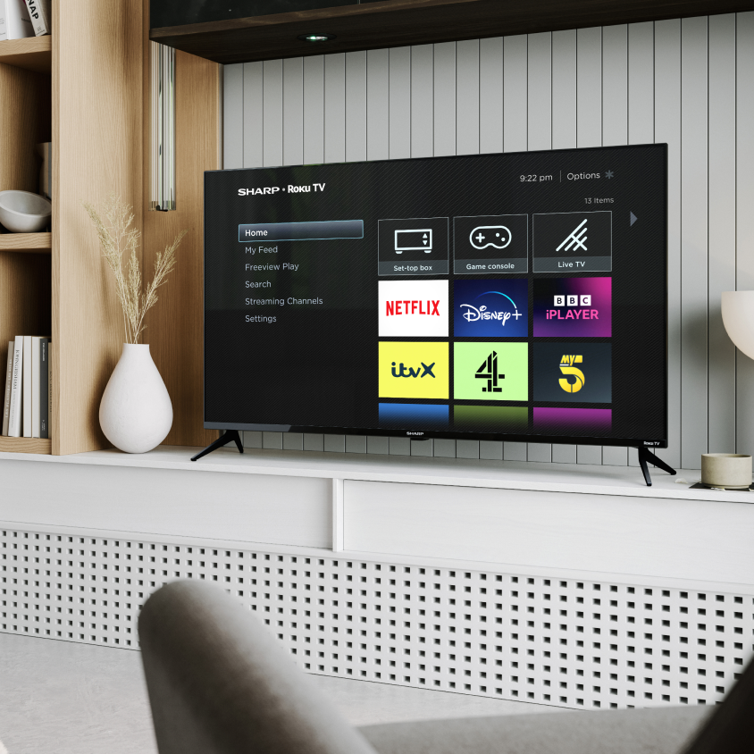 Smart TVs come with built-in Wi-Fi connectivity and require connecting to your broadband, either wirelessly (using your WiFi password) or via an ethernet cable. Once linked up, you can access a variety of streaming services, including free options such as ITV X or subscription-based services such as Netflix and Disney+. The result is a huge choice of content that ensures you’ll never be stuck for something to watch again.