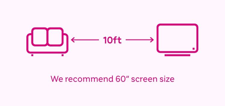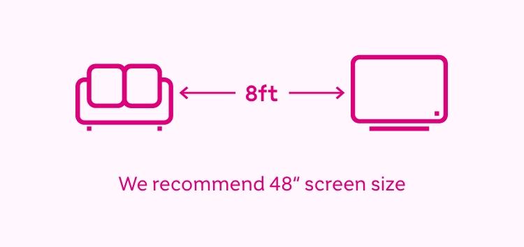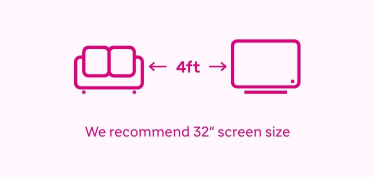 Think about the size of the room and the distance between the TV and your seating area. To give you an idea of what might work best we’ve added the recommended viewing distances for each TV size in this guide.