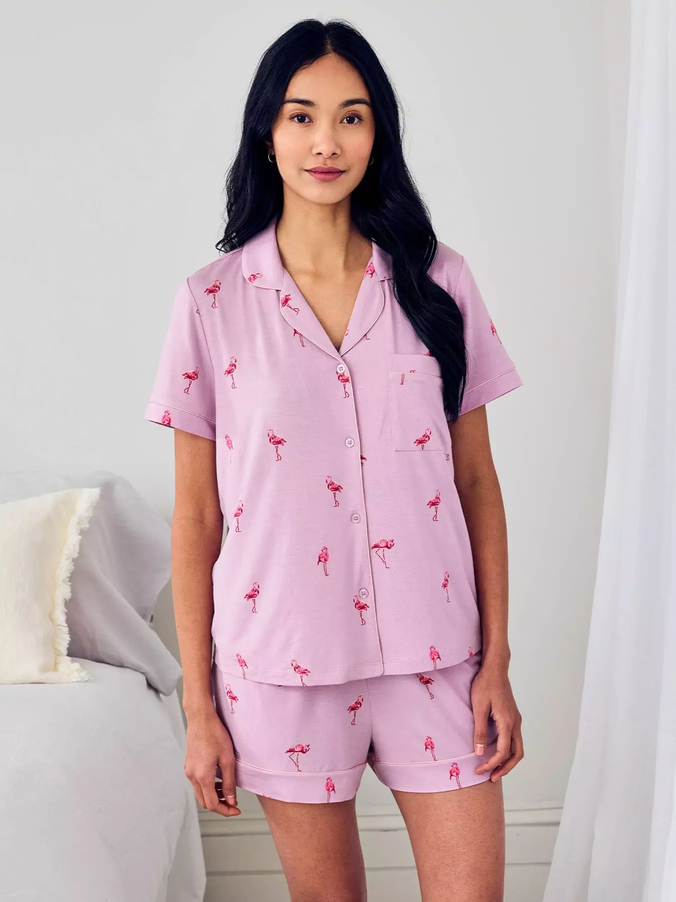 CHELSEA PEERS Short Sleeve Revere And Set in Modal Lenzing