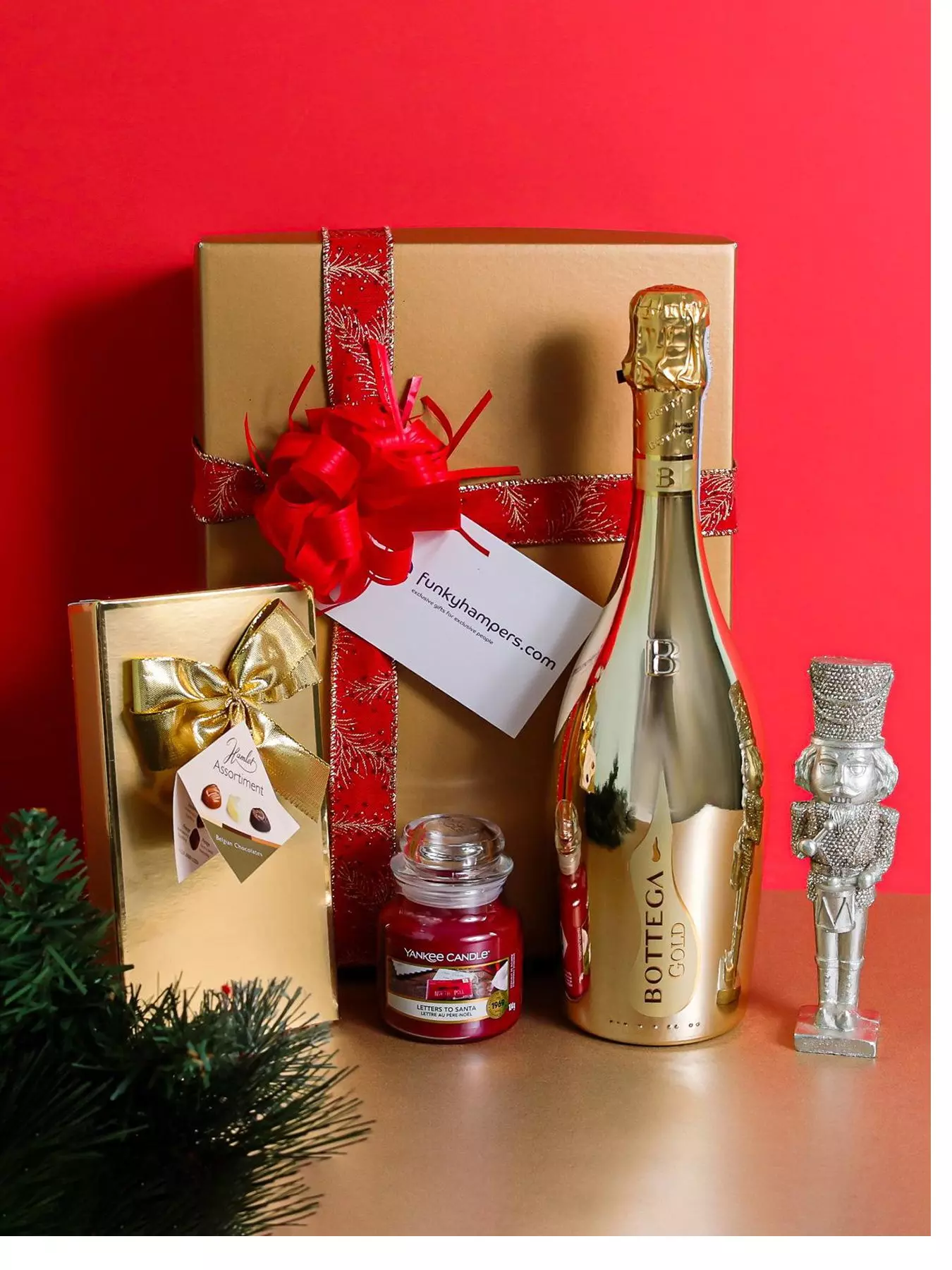Christmas Gold Bottega Prosecco, Yankee Candle And Chocolates Hamper
