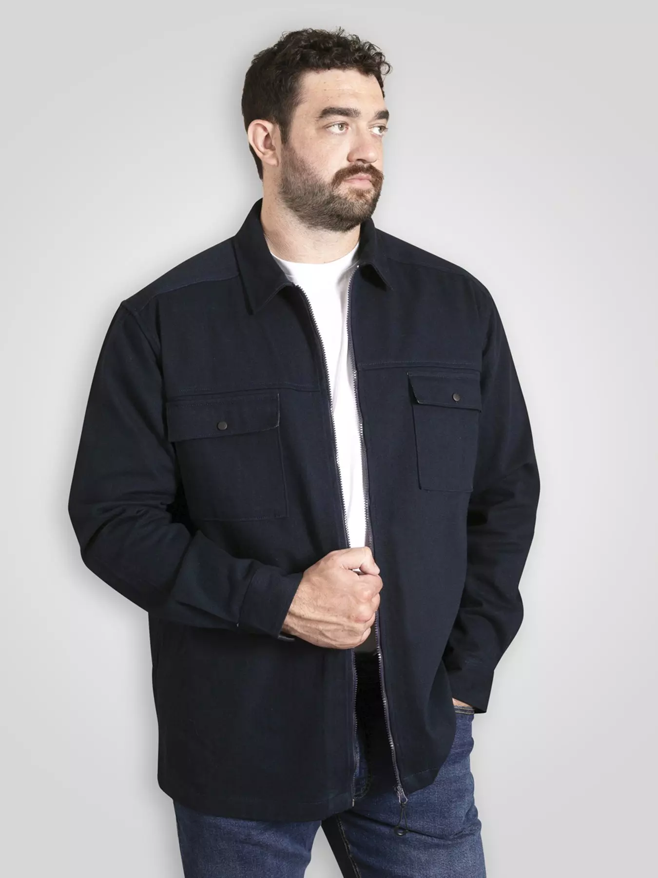 D555Long Sleeve Heavy Shacket Overshirt With Two Chest Patch Pockets - Navy