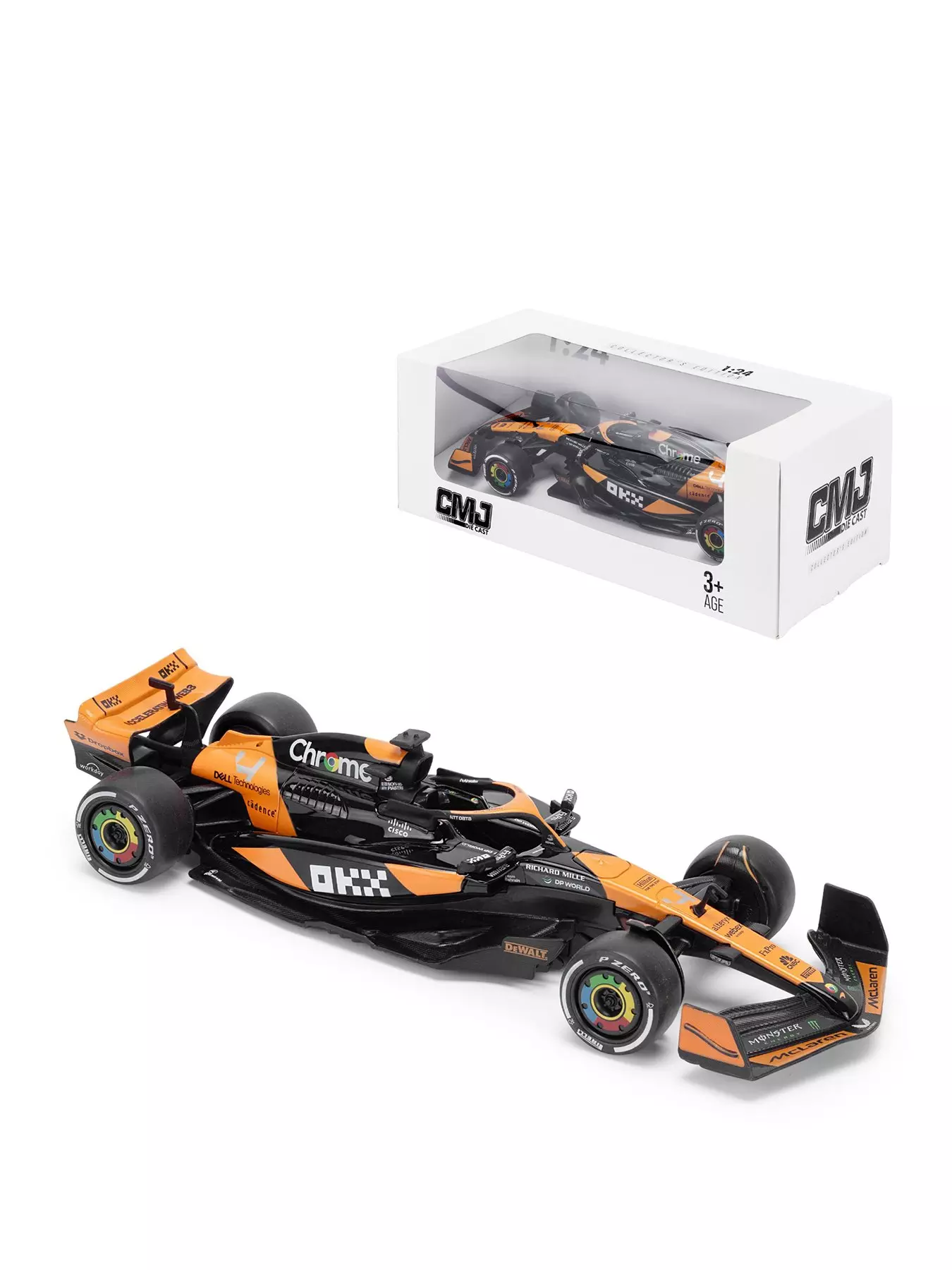 The 1:24 scale officially licensed McLaren F1 diecast car features high-detail craftsmanship, authentic livery, and realistic design, making it a must-have for collectors and F1 enthusiasts.- Depth: 24.3 CM