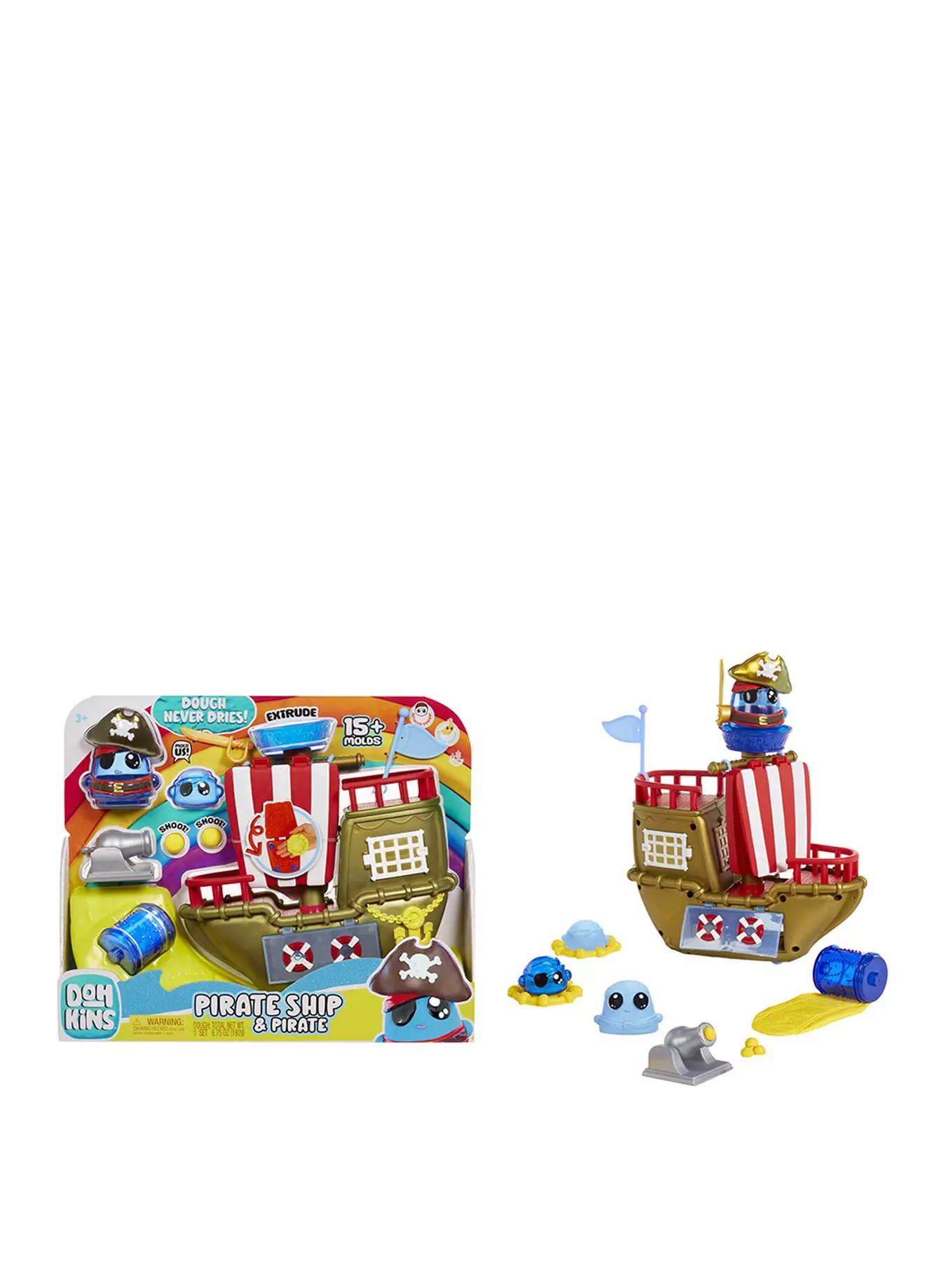 Sail the high seas with the DohKins Pirate Ship! This fun play pack features our Never-Dry Dough that always stays soft, is gluten-free, and smells great – perfect for sculpting and squishing. Use the included character molds and accessories to create your pirate characters, or shape the dough into anything you can think of!The whimsical world of DohKins introduces fun, hands-on play that helps children express themselves with imagination and inspiration. At the same time, kids can build their fine motor skills with tactile play that keeps them entertained for hours.