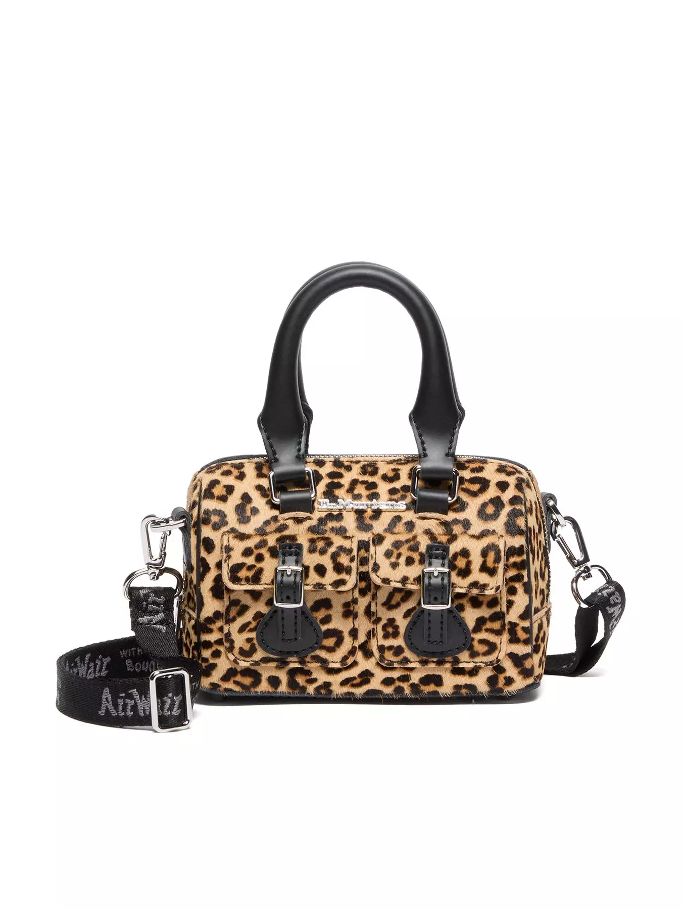 Compact in size yet bold in design, this everyday essentials bag is perfectly sized to fit a mobile phone, with two outer pockets for quick access to smaller items. The body is crafted from Hair On Leather in a striking leopard print, complemented by Kiev leather straps and handles for added durability. A removable AirWair webbing crossbody strap offers versatile styling options, while silver-tone hardware - including a zip fastening, buckles and protective feet - completes the look.- Material Content: Leather
