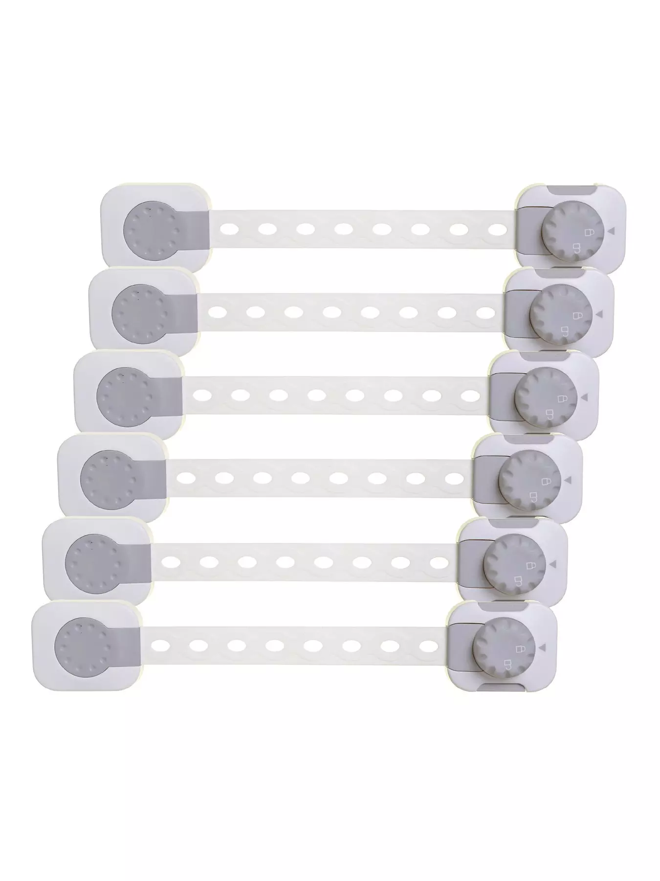 The 6 pack Dreambaby Twist'n'Lock Multi-Purpose Latch with EZY-check Indicator is a great way to prevent curious toddlers from accessing potentially dangerous areas within your home.Its adjustable length means you can cut the strap to the size required. The multi-purpose latch is suitable for use on gloss or laminated furniture, refrigerators and freezers, toilets, glass and mirror cabinets, varnished wood, and timber veneer.