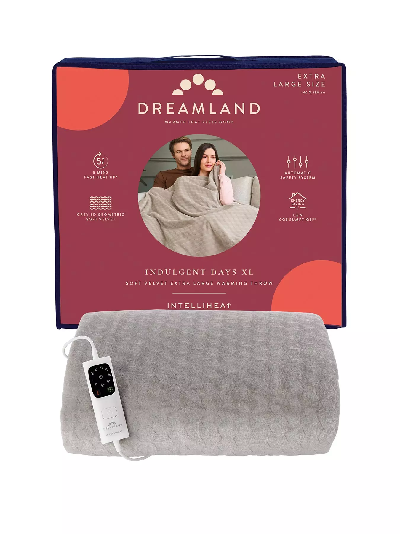 Immerse yourself in cozy luxury with Dreamland's Indulgent Days XL Warming Throw. Envision yourself wrapped in gentle warmth in your living room, enveloped by the sumptuous feel of this heated blanket. Ideal for snuggling on the sofa with its ultra-soft fabric, it's also perfect for adding an extra layer of comfort in bed.Measuring a generous 140 x 180 cm, this versatile blanket is large enough to share with family or to cover a single or double bed. Save on energy costs by lowering your thermostat and enjoying the inviting warmth of this exquisite overblanket.