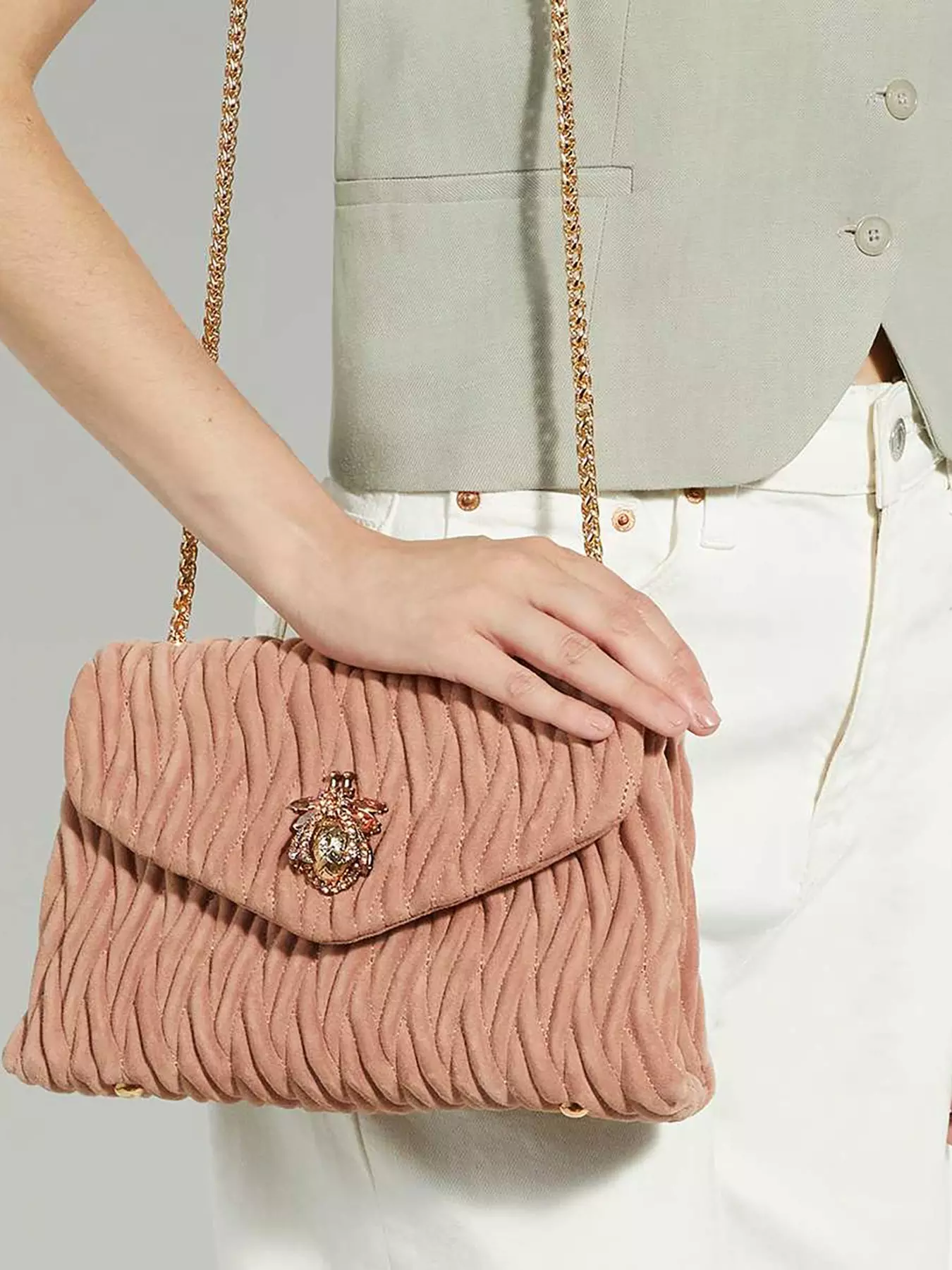 - Crafted from beautifully soft suede leather in a wave quilt design