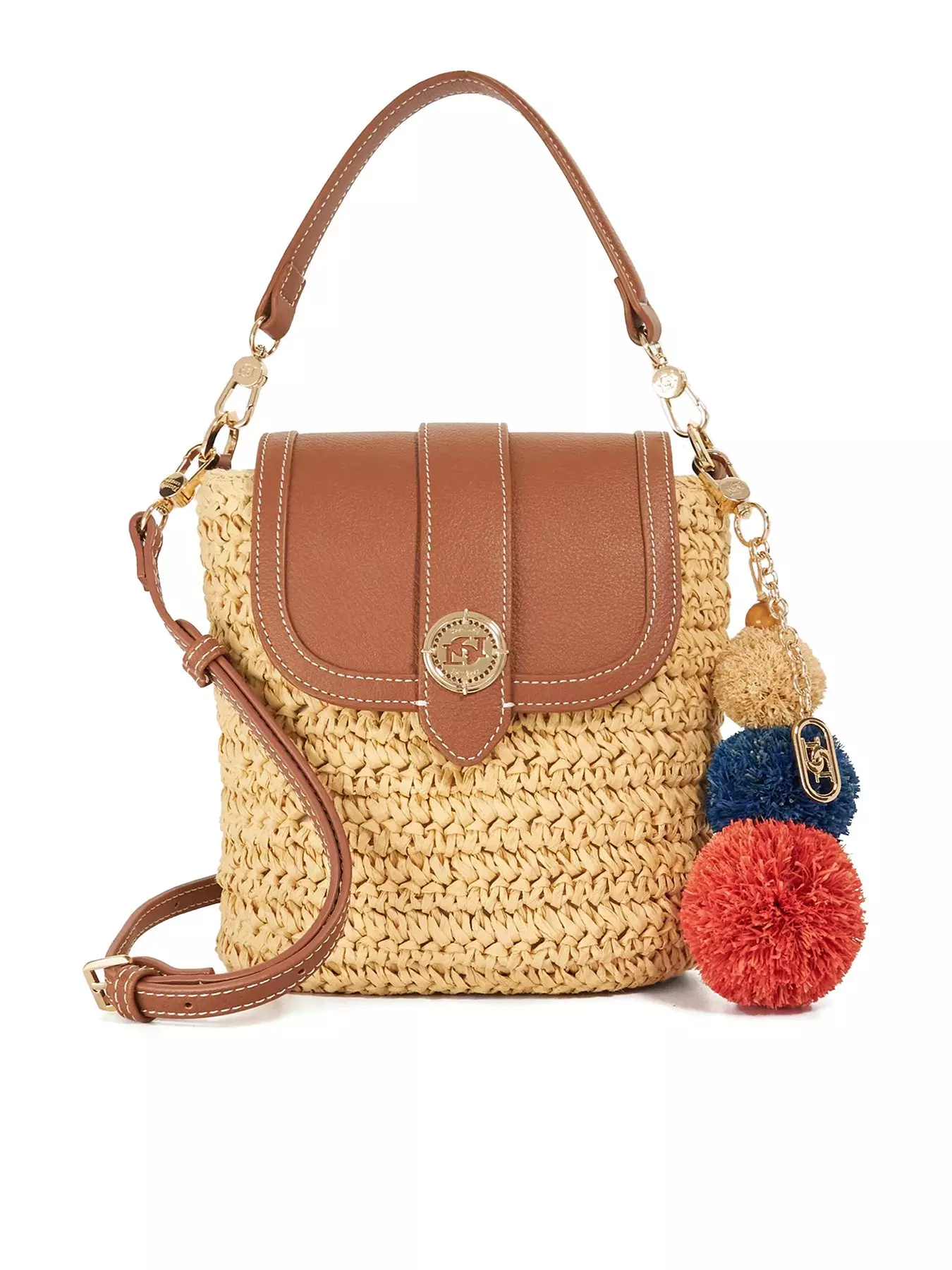 Add a playful touch to your bag collection with Dimple. This crossbody style is made from a summer-ready raffia material and features contrasting finishes for extra texture. Designed with a grab handle and gold hardware Dimple may be a smaller style but it delivers maximum style points. The contrast stitch detailing cute tasse and high summer bag charms add a fun twist while the magnetic popper fastening and internal zip pocket keep your essentials secure and organised.- Washing Instructions: Wipe Clean