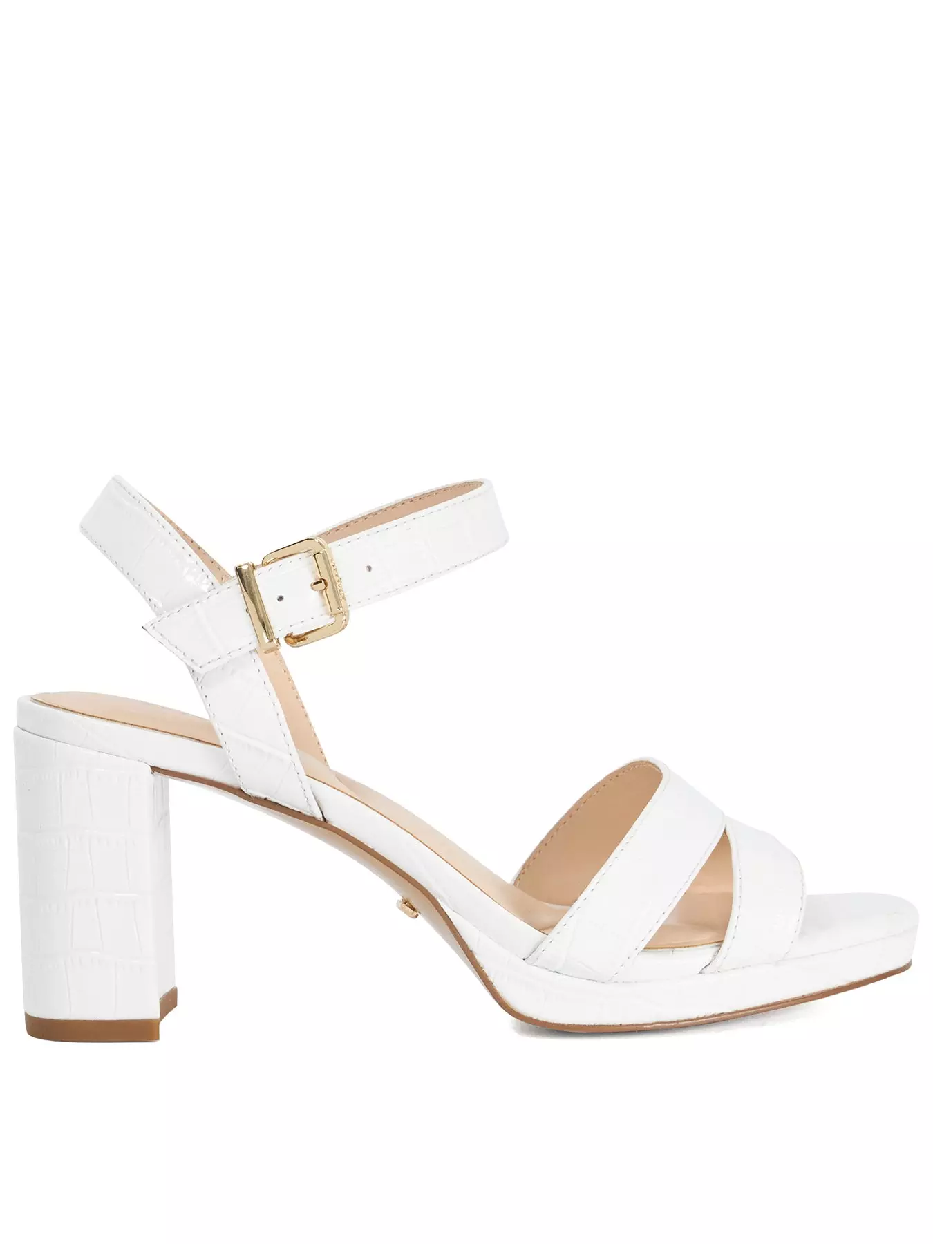 Make a style statement in Manifesting a style that does most of the work for you. Designed with a double strap detail and high block heel this open-toe sandals is always a summer essential.- Material Content: CROC PRINT LEATHER