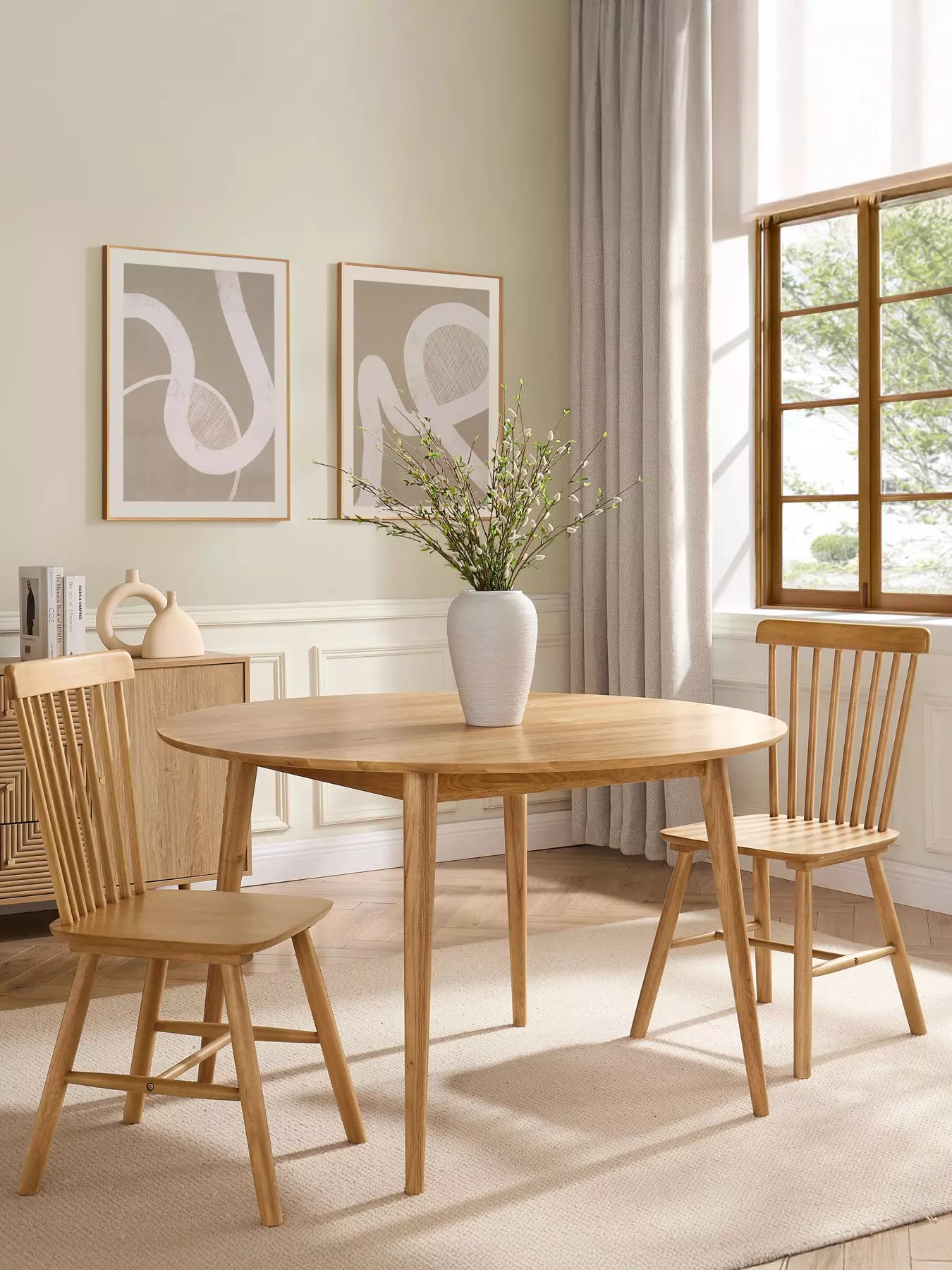 The Harley chairs are a fresh take on a forever favourite - simple, sturdy and endlessly versatile. With their spindle-back design and smooth wooden finish, they suit any setting, from laid-back country kitchens to modern dining corners. Dress them up with seat pads for added comfort or keep things pared-back and effortless. Sold as a set of two.