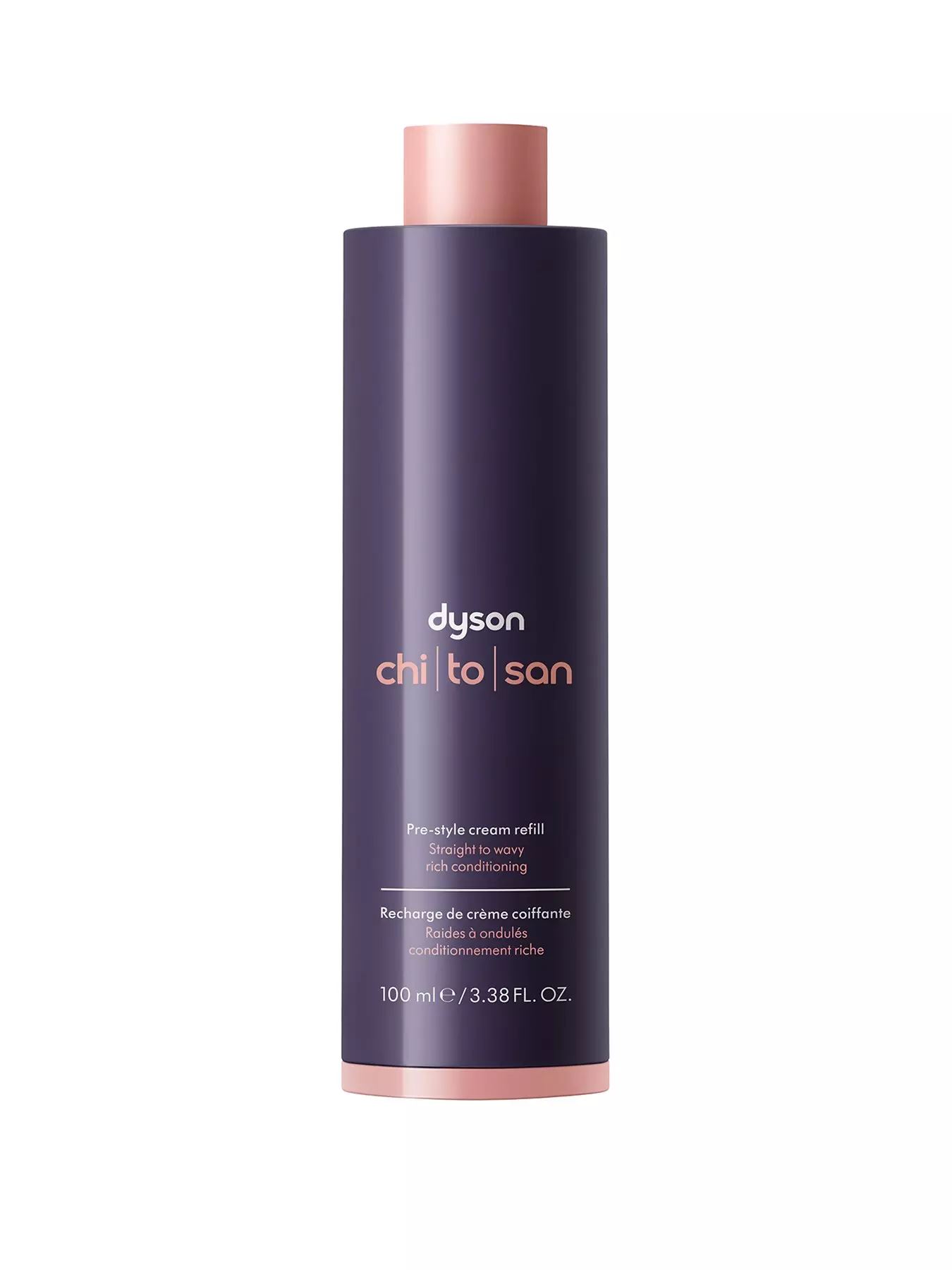 Refills are only for use with your existing Dyson Chitosan™ Pre-style cream packaging and should not be used in isolation. Shop our full-size product.Retain your styles for longer with Dyson Chitosan™ Pre-style cream. Developed to give 2x longer hold¹, without crunch, stickiness or residue – for looks that last all day, while maintaining natural movement and shine.