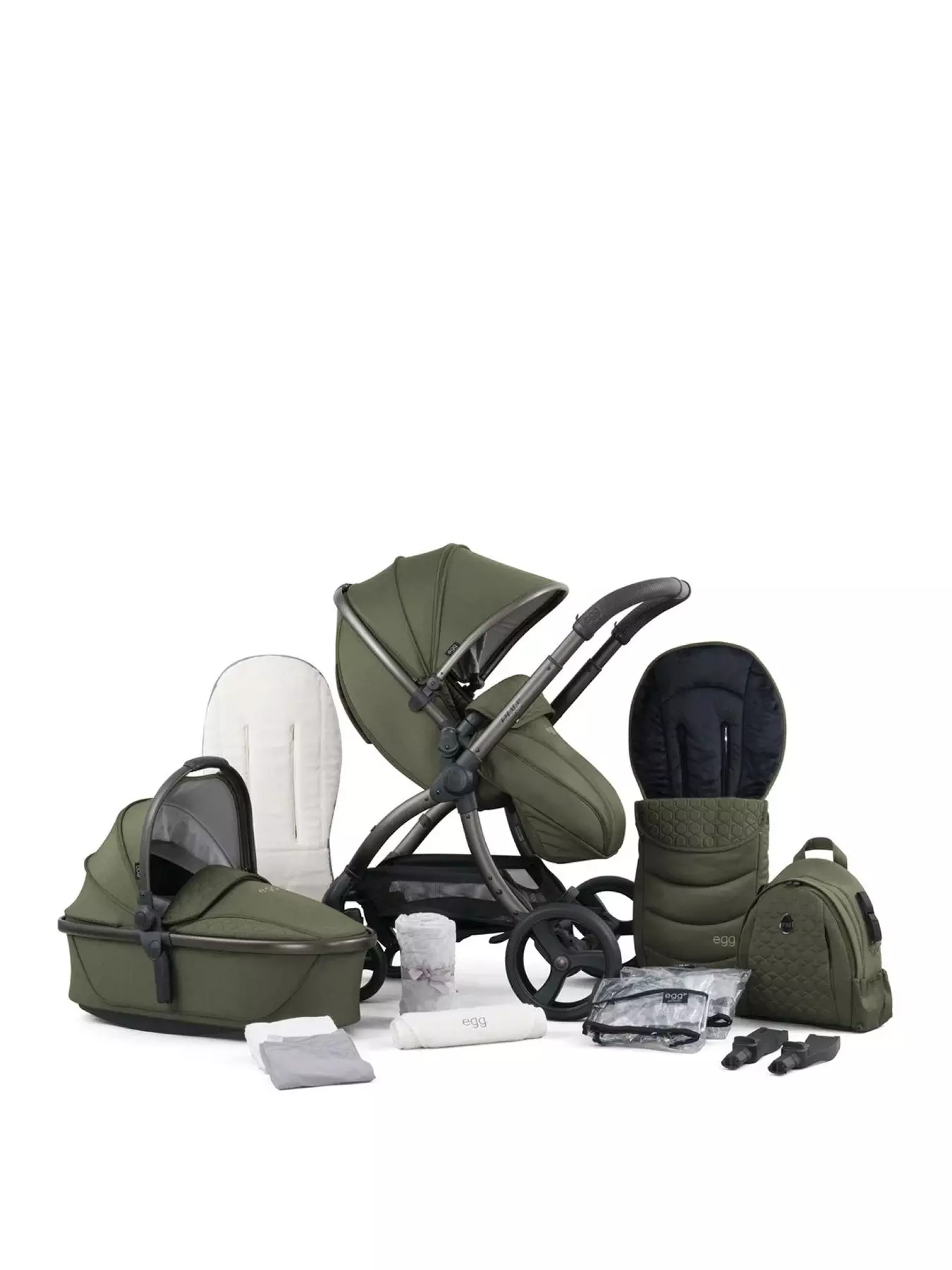 The egg3 Stroller showcases an enhanced, extendable canopy, perfect for day-time naps or so you can fully protect your little one from the sun with its 50+ UPF fabrics. The canopy also incorporates a ventilation window for optimal airflow, which can be seamlessly closed using magnets sewn into the fabric. Offering a three-position recline and affixed either parent or world facing, the egg3 seat is designed to promote comfort for longer. To make parenting easier, the egg3 includes a new one-pull harness. Simply clip in your baby and pull the strap to secure your baby perfectly every time. The seat also features an easily adjustable headrest and harness, accessed discreetly via the rear, to grow with your baby. Featuring a âone-hand fold' the egg3 chassis is compact when folded and free-stands, with the handle clear from the ground. It's large puncture-free tyres feature a unique egg-shaped tread pattern, with the stroller leaving its mark wherever it goes. Engineered for comfort, superior handling and added durability, egg3 has been fitted with Tru-Ride technology as standard for multi-terrain strolling. The egg3 Carrycot creates a perfect haven for the first six months of your child's life, providing a luxurious and protective environment that ensures your baby's safety in a lie-flat position. Featuring a new sustainable Sorona mattress, which is washable, breathable and chemical free. The new egg3 Carrycot also includes an extra-large hood with ventilation window and rocking rails on its base, so you can soothe your baby to sleep. For growing families or twins, the egg3 can be transformed for two using the egg2/3 tandem adaptors or opt for the new egg Ride-on-Board with Seat for toddlers with a little more independence. Available to purchase a 9-piece snuggle package, including: egg3 stroller, carrycot, carrycot sheets, sherpa carrycot mattress topper, backpack, footmuff, fur seat liner, blanket and the multi car seat adaptors.- Accessory List: All egg3® colourways are available to purchase an 9-piece snuggle package,including:egg3 stroller