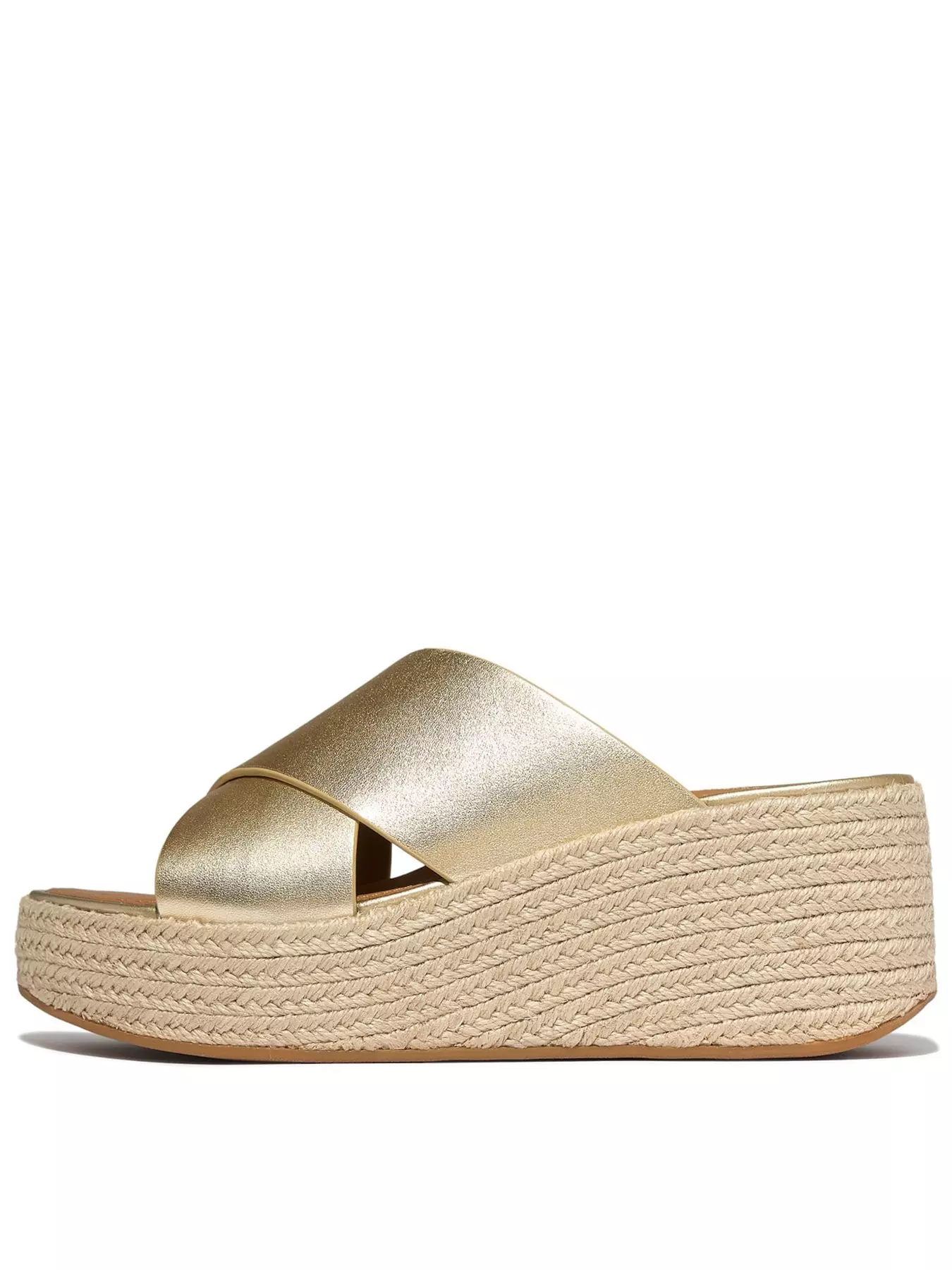 FitFlopPlatfforms Espadrille Leather Wedge Cross Slides