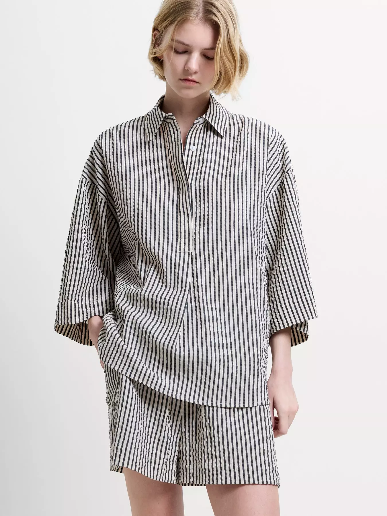 French ConnectionCotton Striped Crinkle Long Sleeve Button Shirt
