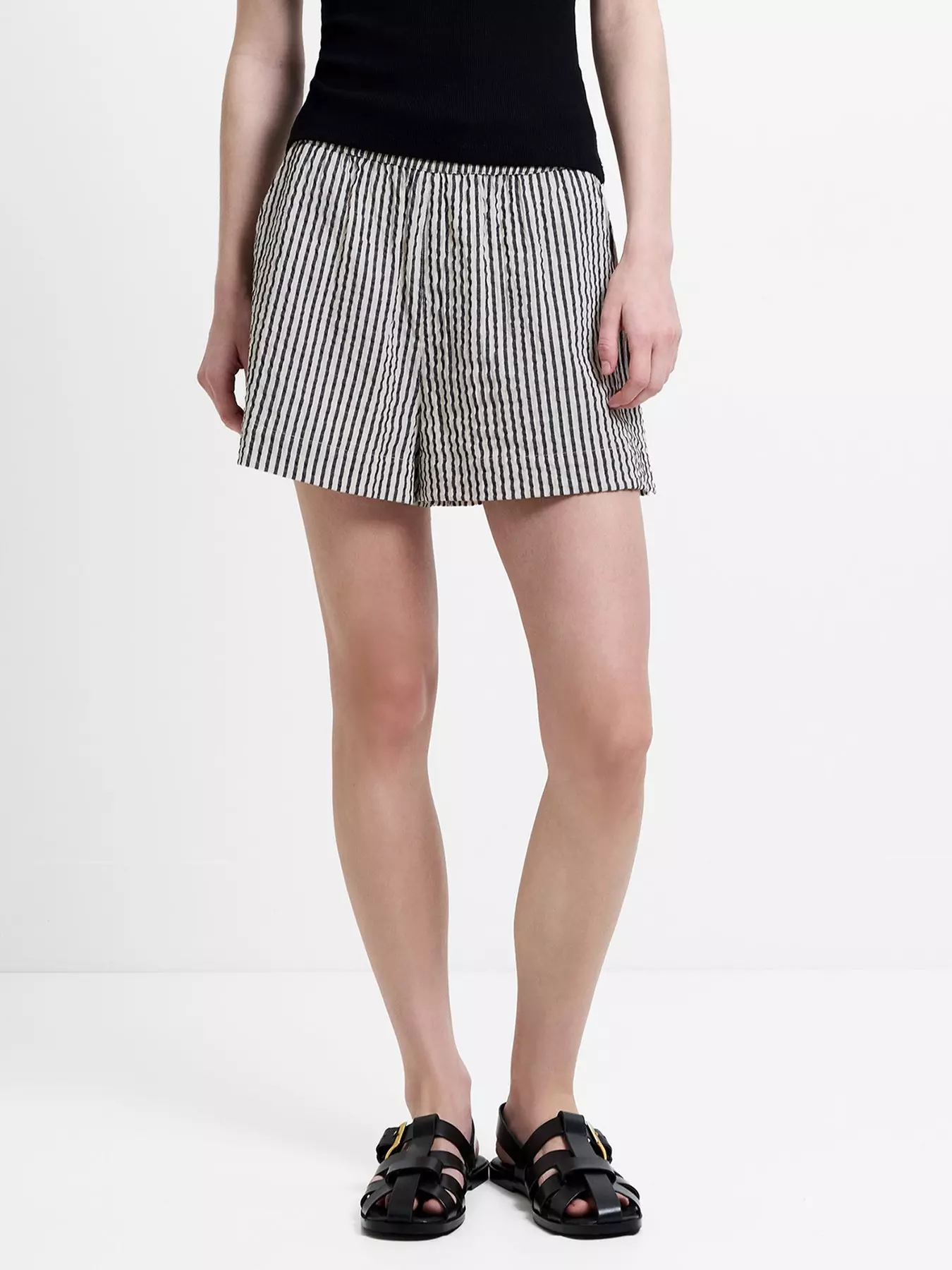 French Connection Cotton Striped Crinkle Mini Shorts