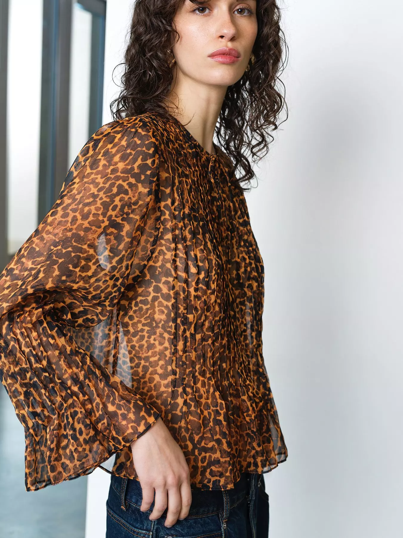 French Connection Sheer Leopard Print Long Sleeve Blouse