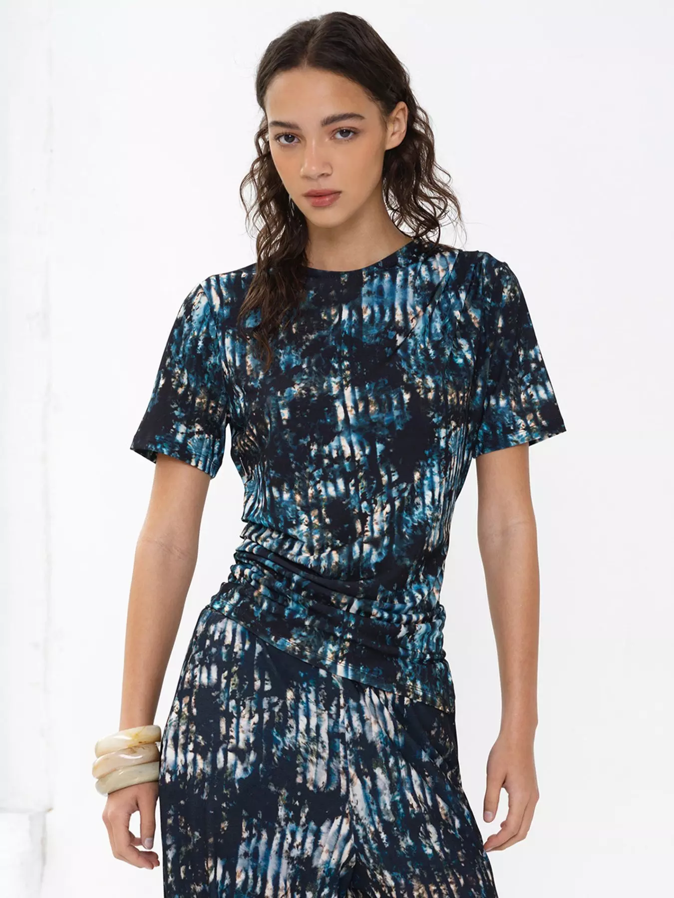 French ConnectionTie-dye Crew Neck Short Sleeve Draped Top