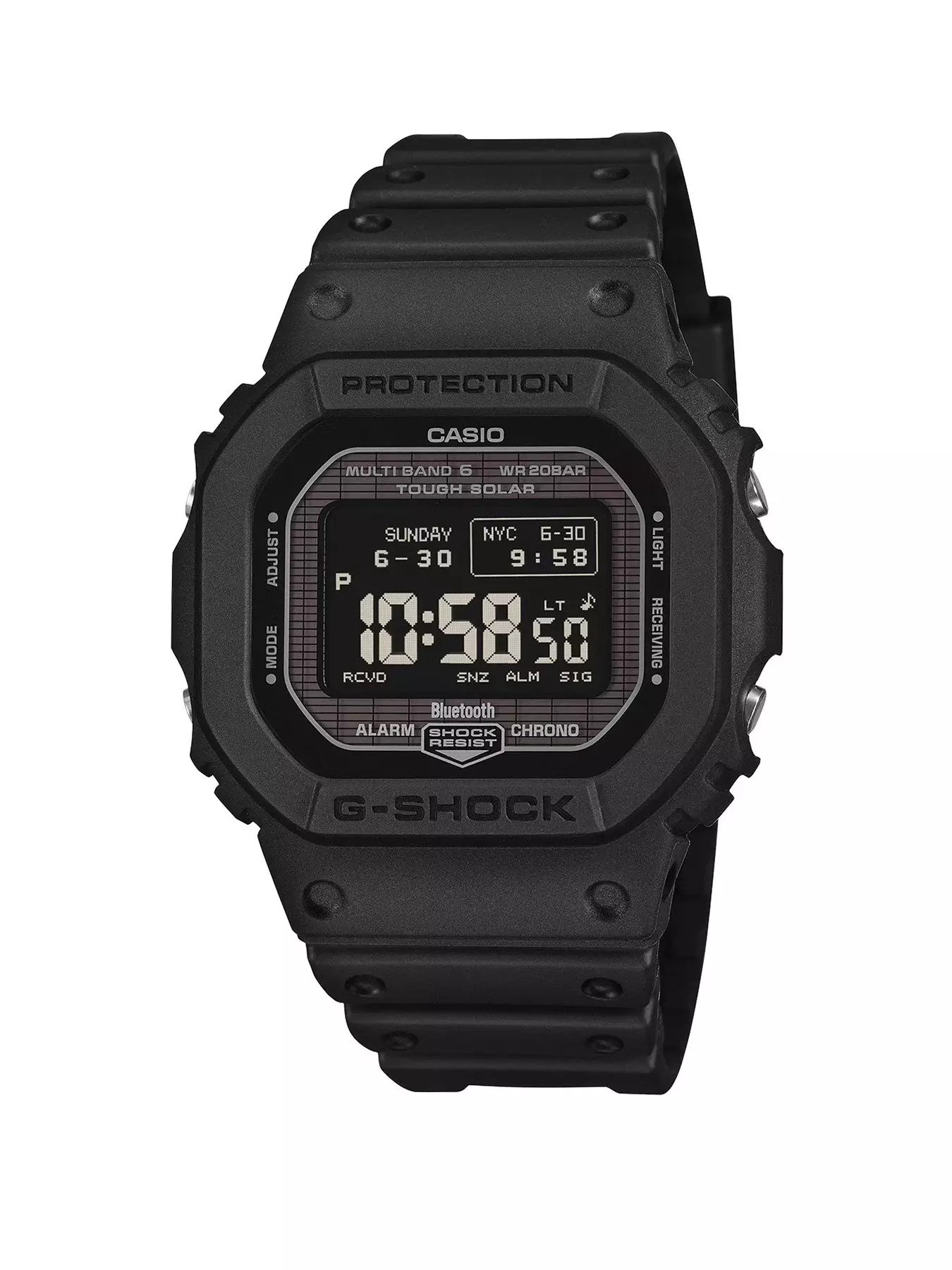 Engineered for total immersion, these timepieces combine cutting-edge functionality with unmistakable G-SHOCK design. Experience exceptional clarity with a memory-in-pixel LCD, solar-powered reliability through Tough Solar, seamless smartphone connectivity via Bluetooth, and precision timekeeping with radio-wave calibration - all built into one rugged, refined form.Inspired by the icons that started it all, the dial colours draw from the classic DW-5600UE and DW-5600UBB, while the solar panels subtle brick-pattern design nods to the original G-SHOCK DNA. Matching the size of the DW-5600UE, each model ensures a secure and comfortable fit for everyday wear.