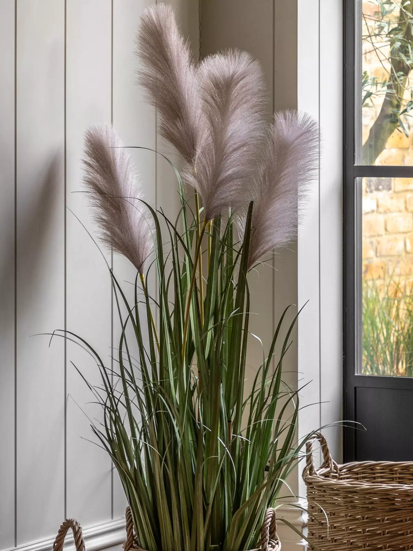 Make a bold style statement with an eye catching faux pampas. Ready to place in a planter of your choice, the soft and tactile pampas seed heads are surrounded by structural grass stems, creating a striking and modern look.- Depth: 500 MM