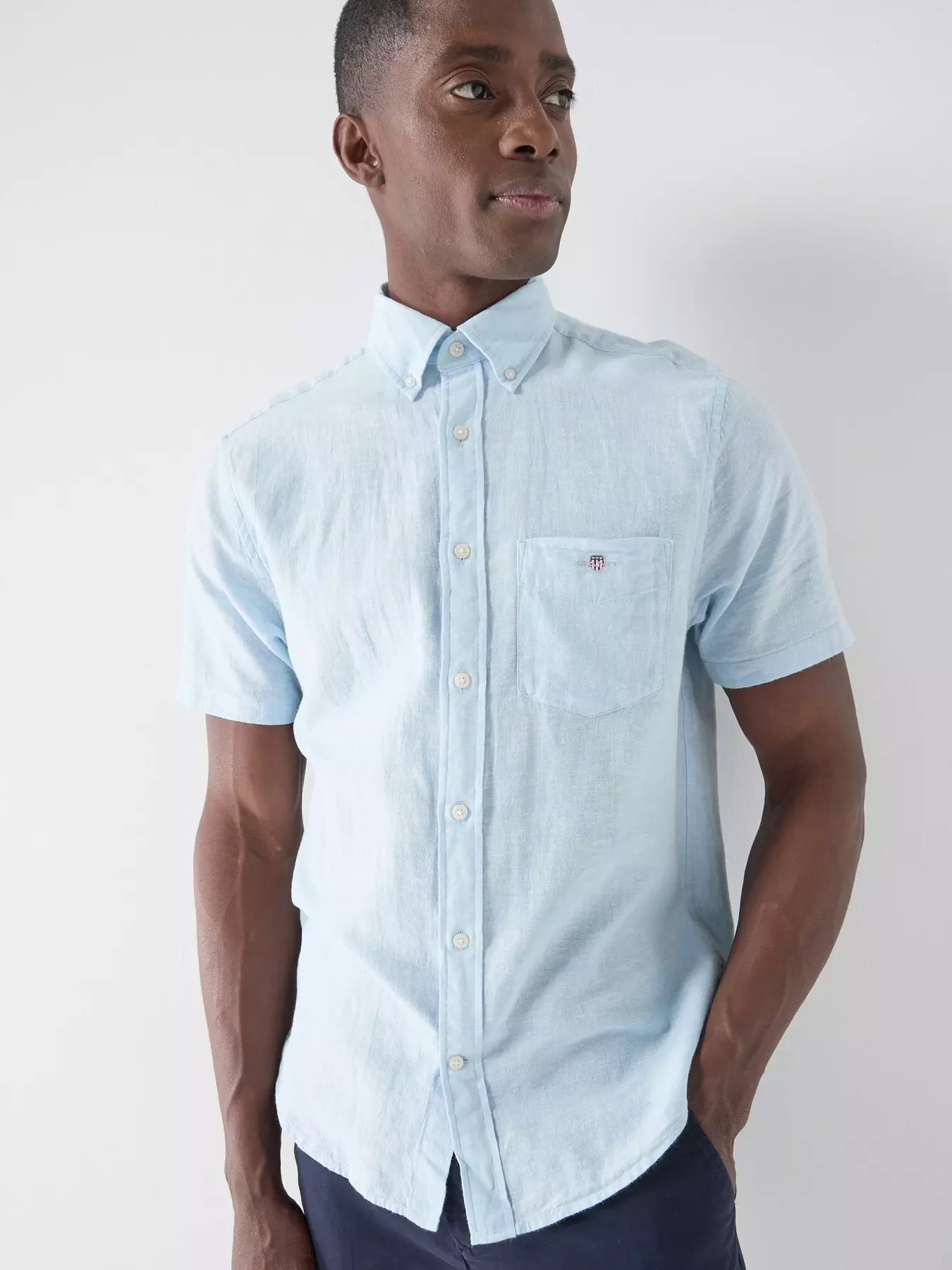 GANTRegular Fit Cotton Linen Blend Short Sleeve Shirt - Light Blue