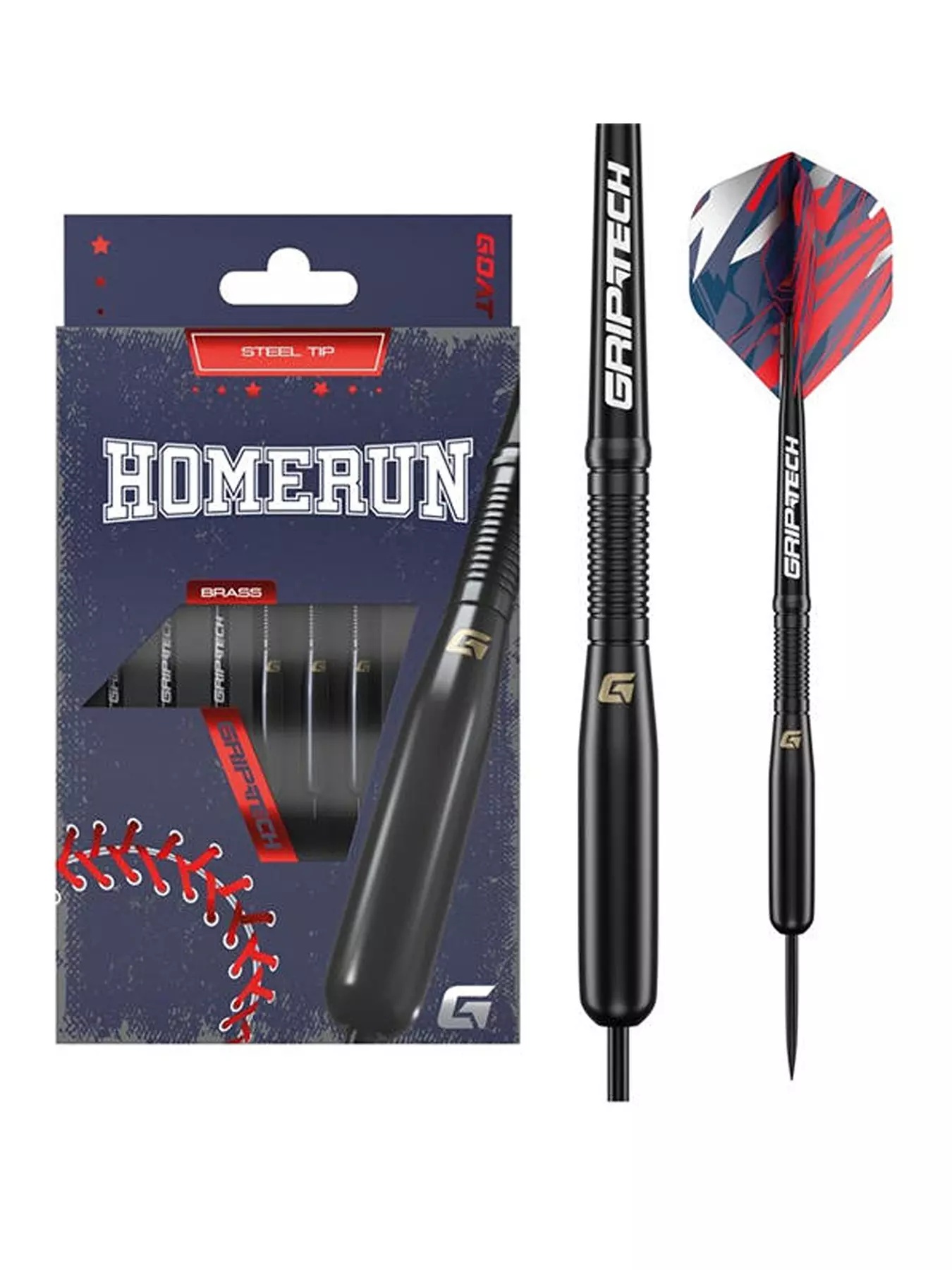 GOAT Homerun Darts - Steel Tip - Brass - 15g. Feel the strength of a baseball bat with the GOAT Homerun Brass darts. Crafted from high-quality brass, they feature a smooth front for clean release and a textured rear grip for superior control. These darts are perfect for players looking to generate power and dominate the board.- Depth: 2 CM