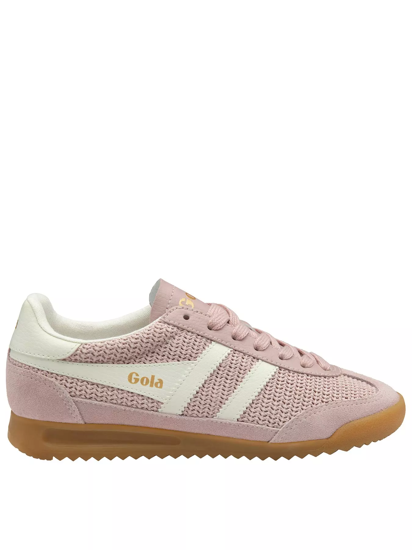 Embrace the season of sunshine with Tornado Zephyr, a must-have women's trainer from Gola. The classic tornado silhouette that we all know, and love, combined with a crochet stitched upper that feels fresh and new. The timeless chalk pink/off white colour palette is enhanced by the slight wedge gum sole that gives this women's Gola trainer old school charm.- Material Content: Upper: 80% Cotton 20% Suede, Lining: 100% Cotton Canvas, Sole: 100% Rubber