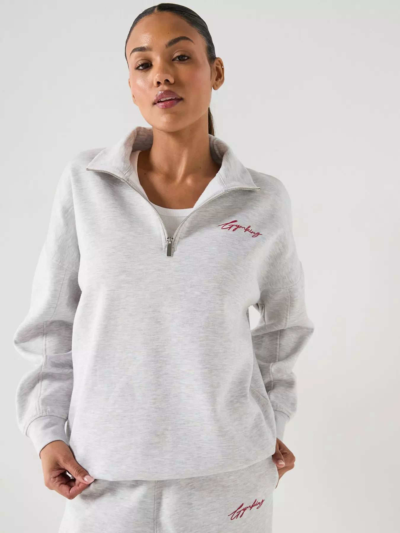 Gym KingWomens Script Mindset 1/4 Zip Funnel Neck Sweatshirt - Grey