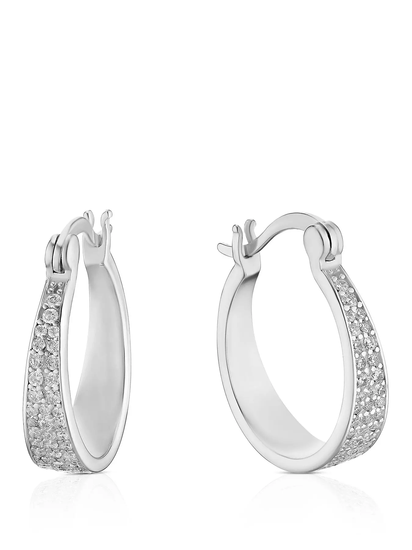 - These sterling silver hoop earrings are pavé set with sparkling cubic zirconia, offering a glamorous and elegant design that adds dazzling shine and sophistication to any outfit.