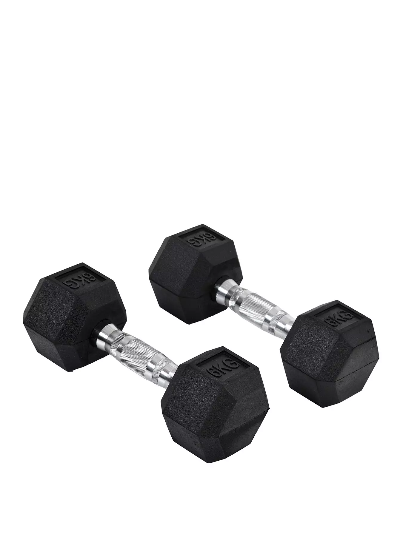 There's a reason dumbbells have remained one of the most popular pieces of fitness equipment for hundreds of years. They are incredibly versatile, and most importantly, one of the most effective ways to build muscle, while improving your overall fitness.This pair of Homcom hexagon dumbbells with rubber is perfect for whatever fitness regime you want to start. Each weight is built with metal and rubber, which is durable, while also preventing your floor from being scratched. The knurl guarantees your safety when you do alternating dumbbell curl, overhead shrug, dumbbell triceps kickback, etc. They are an ideal way to make exercise your new routine.