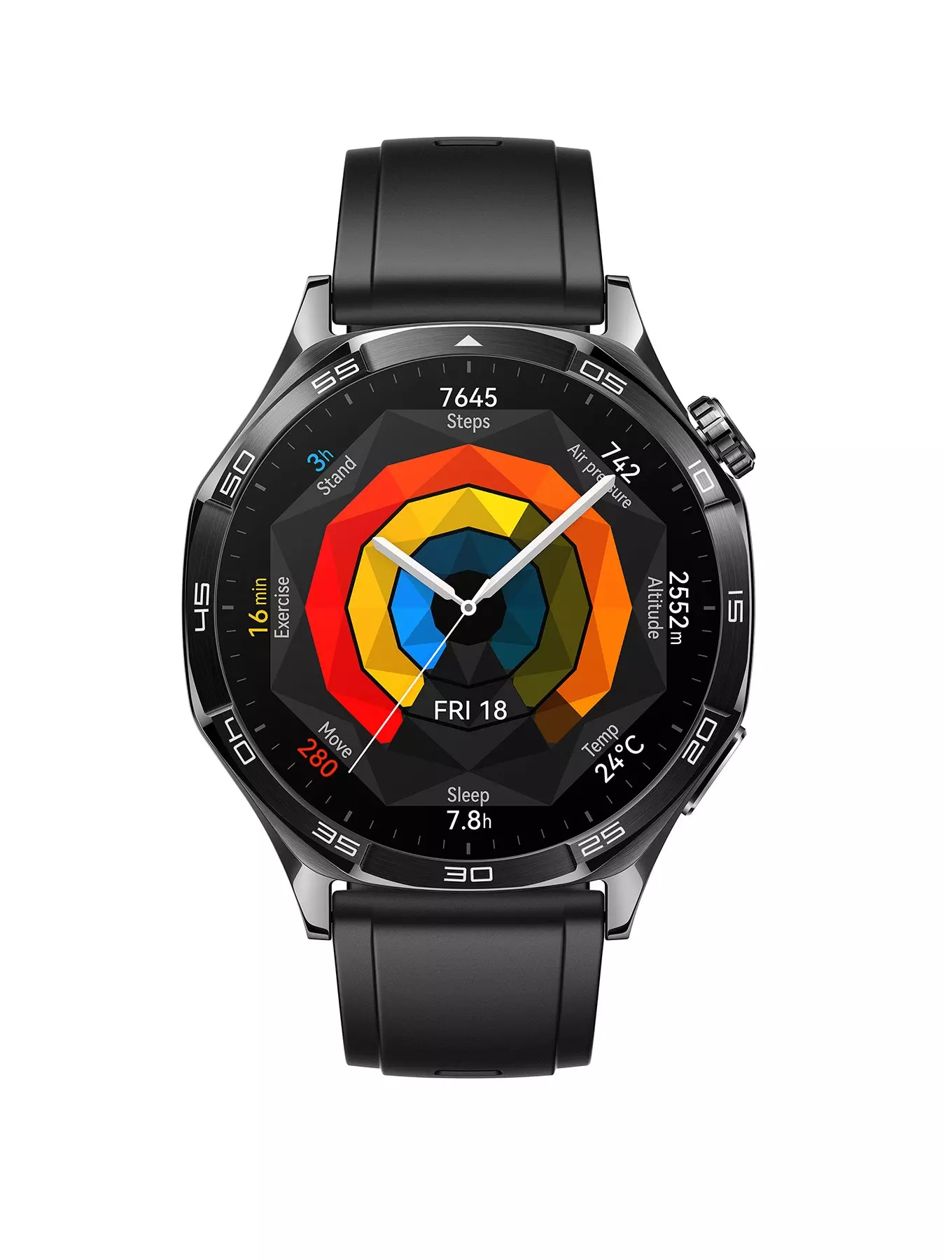 The Huawei GT 5 Watch features a sharp-edged design that showcases the evolution of geometric aesthetics, complemented by all-new watch faces for a modern and stylish look.