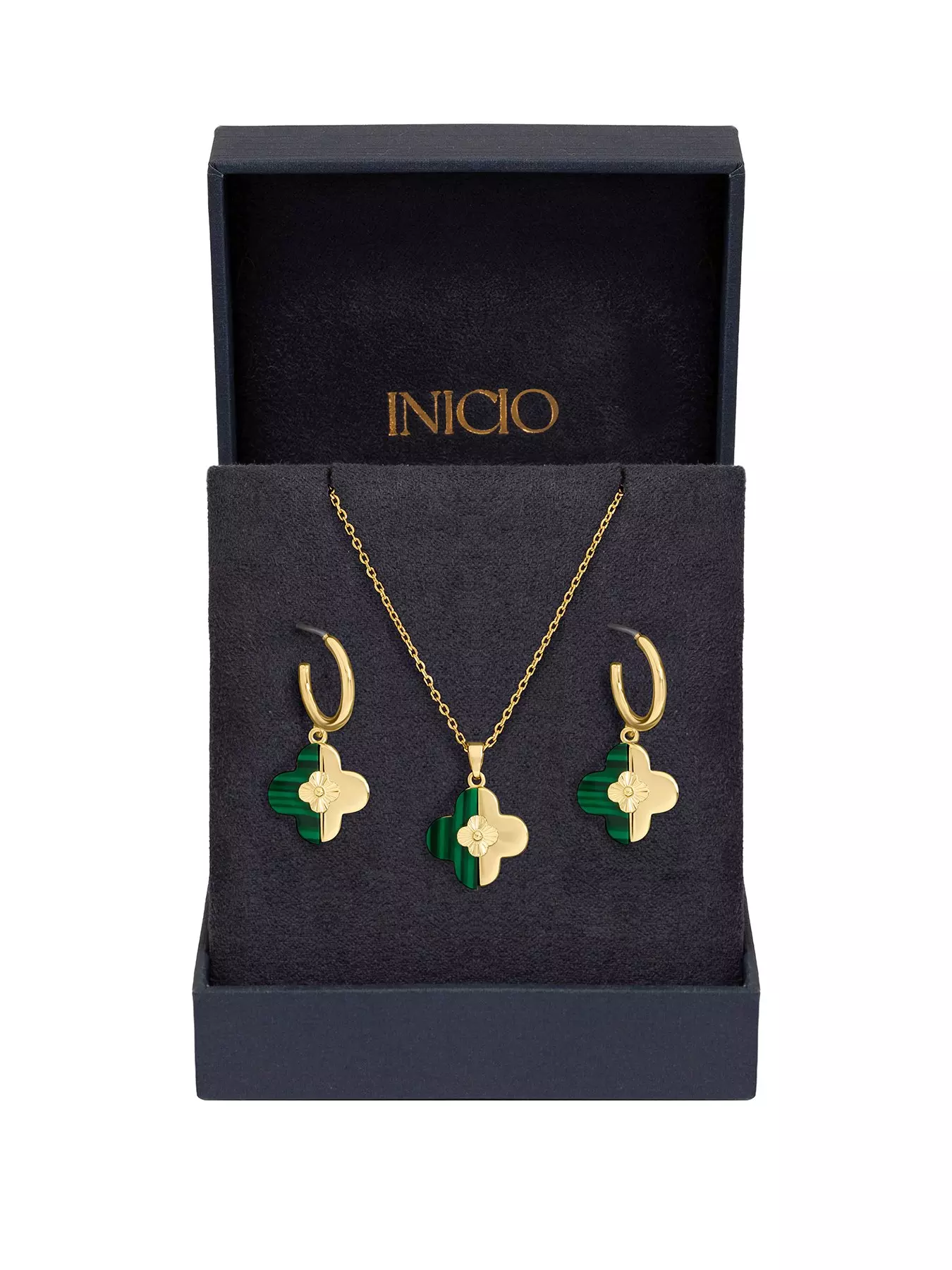 InicioGold Plated and Malachite Clover Set - Gift Box
